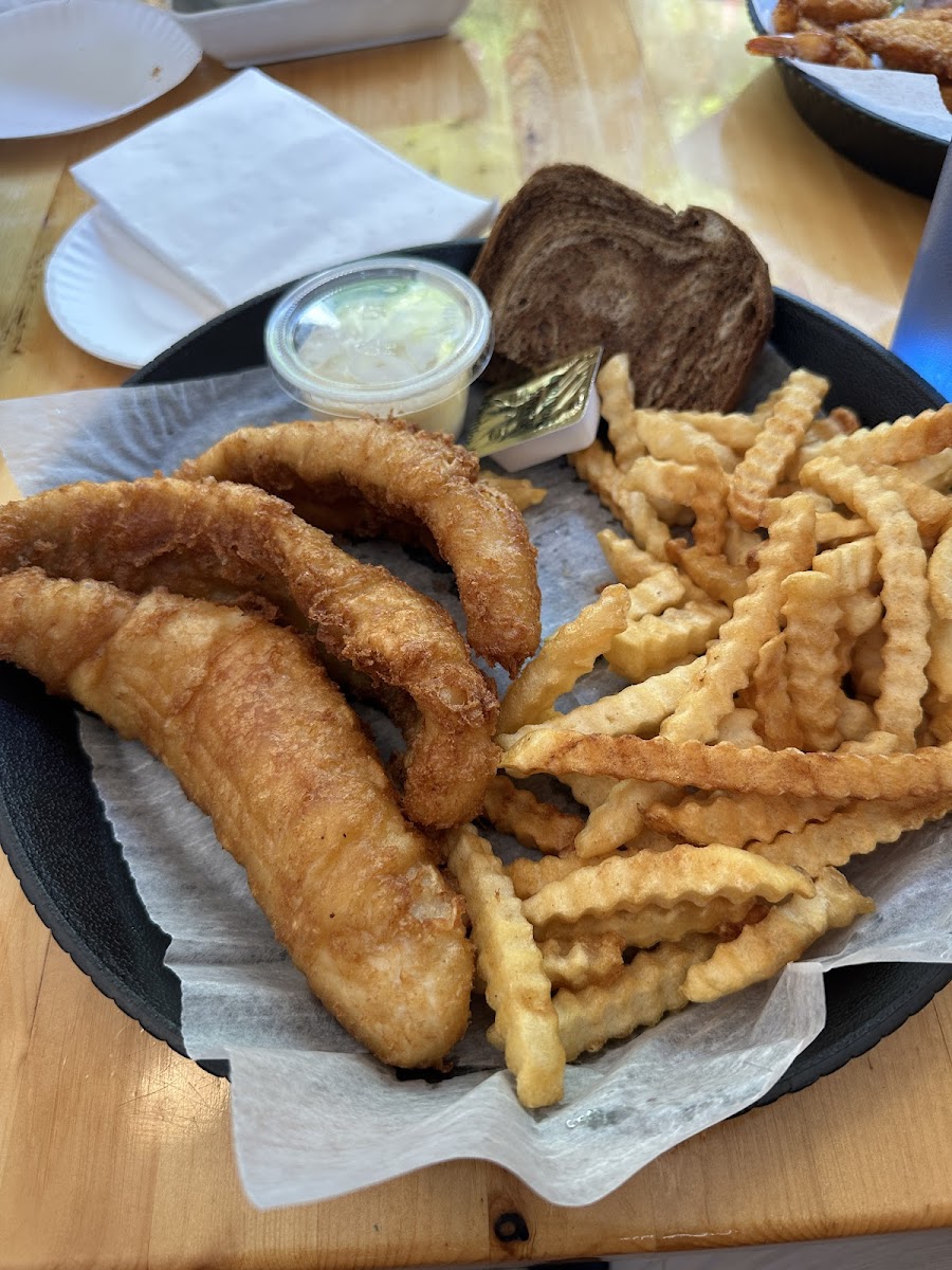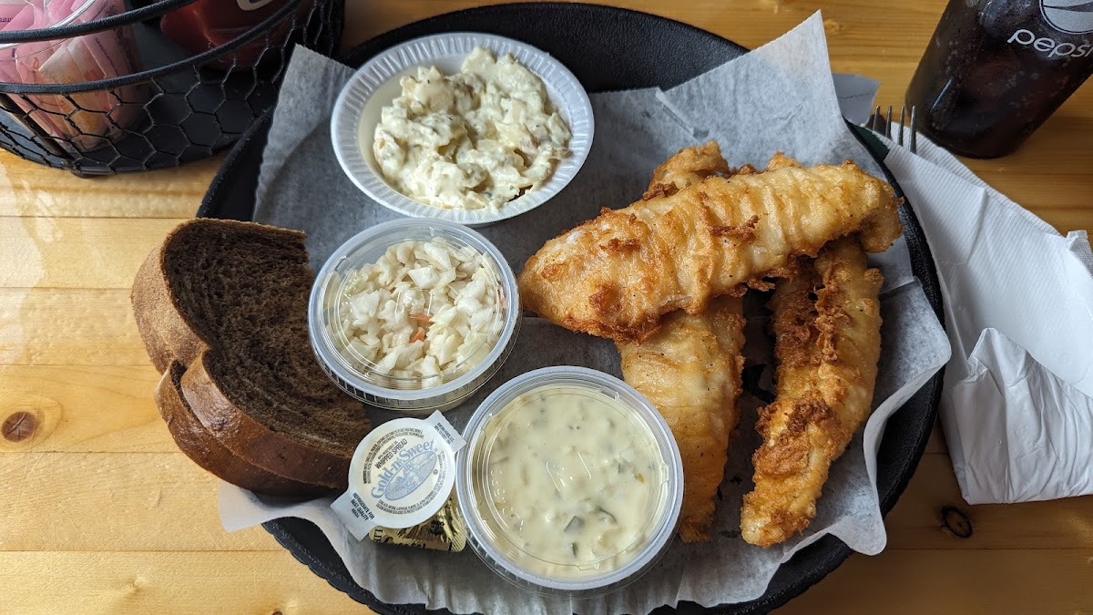 Was driving around in Northern Wisconsin and found this wonderful bar and restaurant! Anyplace that has a popcorn machine is my new favorite. Fish & chips served every day and three big pieces of cod in beer batter, fries, coleslaw and bread! Will be back soon!