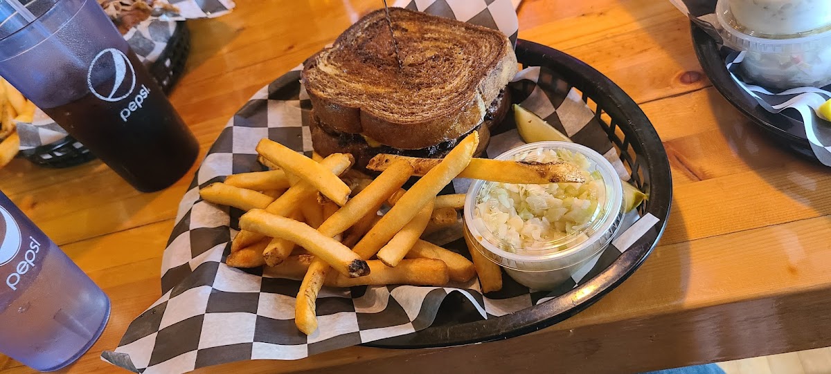 always heard about this place but never got around to going into it until the other day this is midday and we picked a perfect time. the menu had a lot of options and we decided basically all to get hamburgers except for my sister who went with the nachos the hamburgers were terrific and they were perfectly cooked and we love the sides they were really excellent my sister did not like her super huge nachos but I tell you what it was a lot. but she was disappointed because it had some type of weird Chicken on it and she wasn't too thrilled about that. but otherwise it looked pretty darn good are waitress was very sweet we really liked her a lot very friendly and very patient with us I'd say you just can't go wrong with this place definitely a thumbs up and I have heard they have a great fish fry