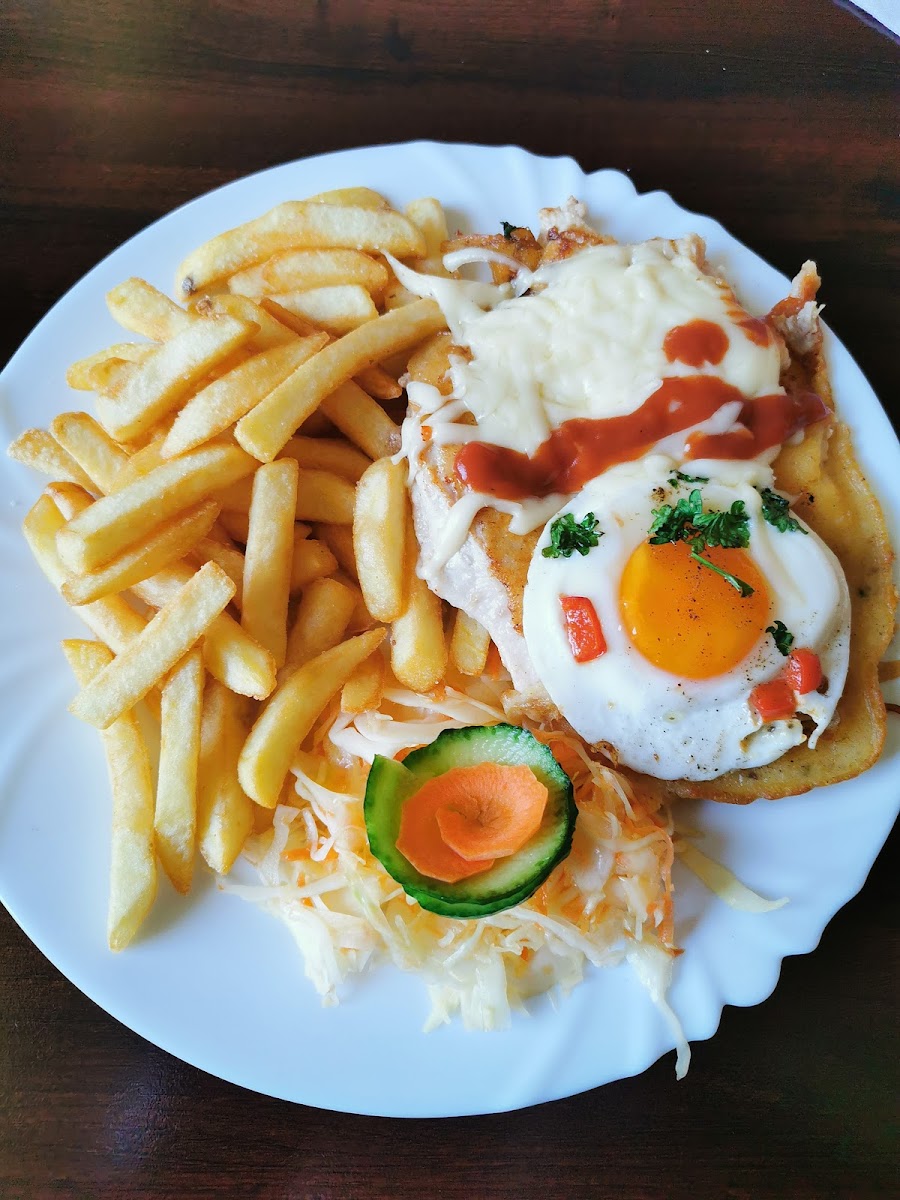 Úplně normální Česká kuchyně která je vynikající. Ma to ale jeden háček. Svoje jídla dochucuji trochu jinak než ve většině restauraci. Pro některé to může být problém. Pro mne který rad zkouší tak ne a byl jsem mile překvapen že lze vařit zase trochu jinak. Zvláště když se jedná o vesnici mezi Ol a Př kdy obci profrčíte a nemusíte si jich vůbec všimnout. Tak si dejte puazu, vyzkoušejte a třeba budete mít další místo kam se budete rádi vracet. Pokud mohu odhadovat tak to vlastní mlada rodina která vari srdcem tak jim držím palce ať vše zvládnou. Dekuji.