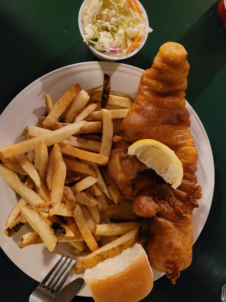Large portions, good food and friendly service. Lots of live music on the schedule and some special menu days like prime rib etc.