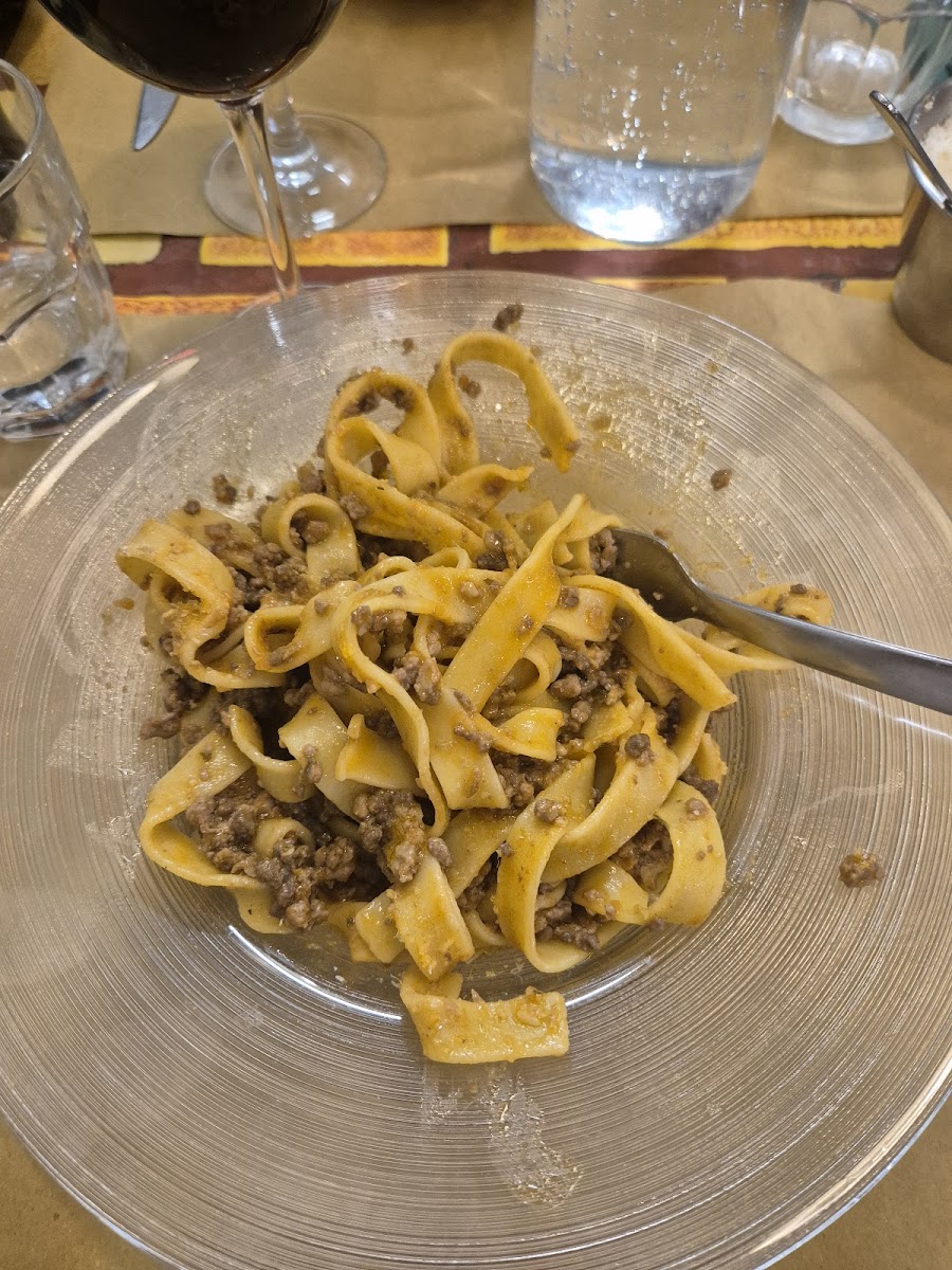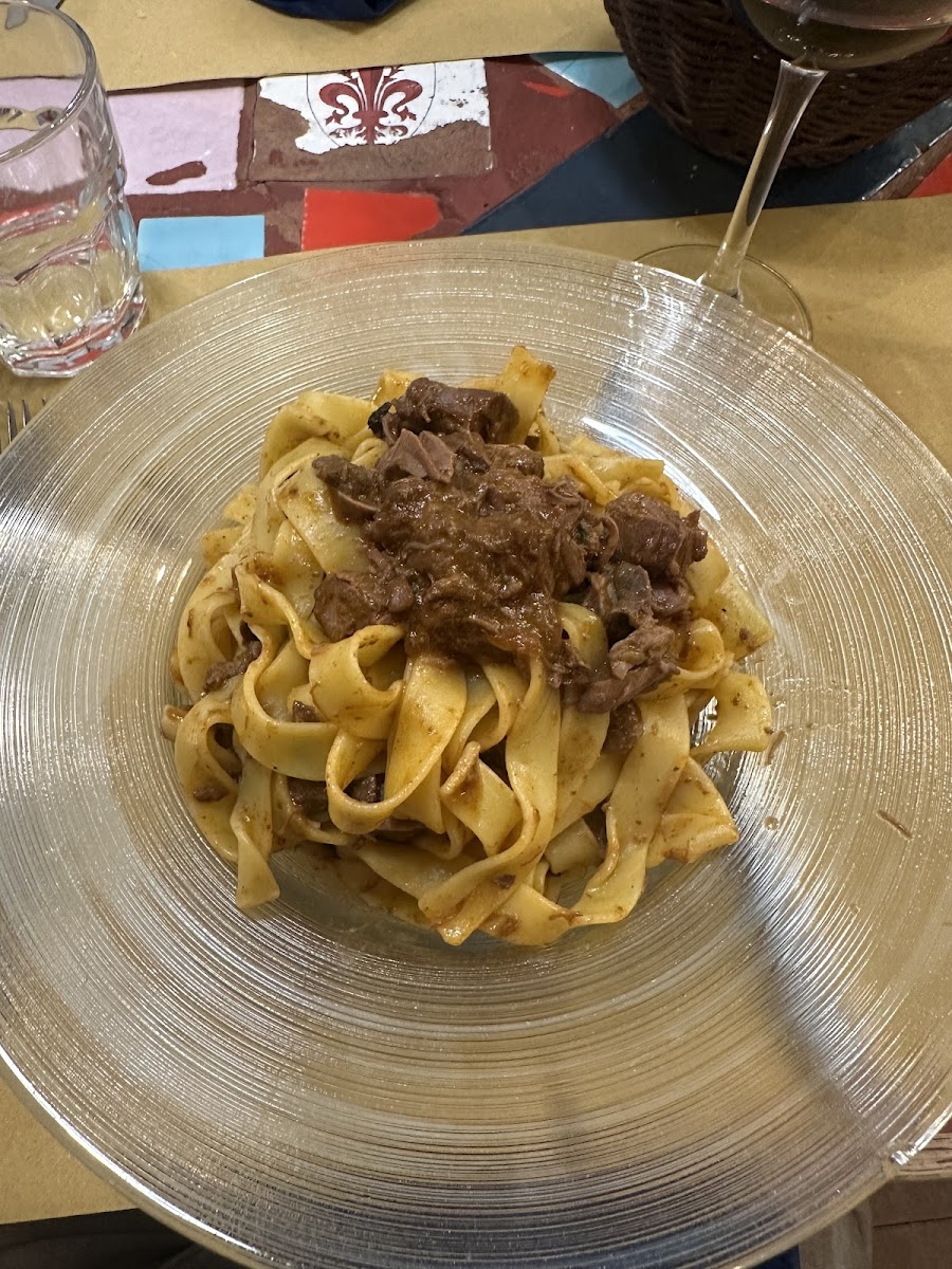 Stumbled across this restaurant by chance on my first night in Florence after visiting another restaurant where the food was ok. This place was so busy, every seat inside and outside was taken - so I thought to myself I’ll be back again on my last night. This restaurant, their food did not disappoint! We didn’t have a reservation, so we got there at 7:30pm, in hope we will get a table for 3 people and we did! For food we ordered the following: Fried duck egg with truffle Pasta with truffle Pasta with clams Pasta with white rabbit sauce Rabbit Beef with mushrooms (not pictured) Tiramisu The pasta dishes were incredible. I ate the pasta with truffle and pasta with clams - they were just so good. Cooked to perfection and the flavours were just right. My friends who ordered the pasta with white rabbit sauce, rabbit and beef with mushrooms all praised how delicious the food was! We paired the food with limoncello spritz (it was strong the drink! ) and ended the dinner with classic tiramisu which was just as delicious! Service was friendly and attentive. The man (wearing with glasses) who served us was very lovely and funny! This restaurant is away from the hustle and bustle of Florence therefore a lot of the diners are local and I can honestly see why they are so busy because the food is incredible. This whole meal will live rent free in my head forever and I hope to be back again to eat at this restaurant again!