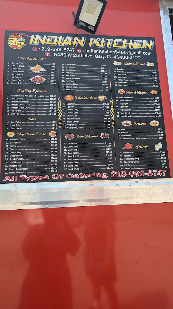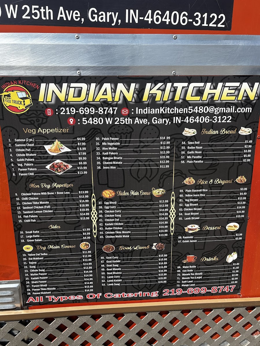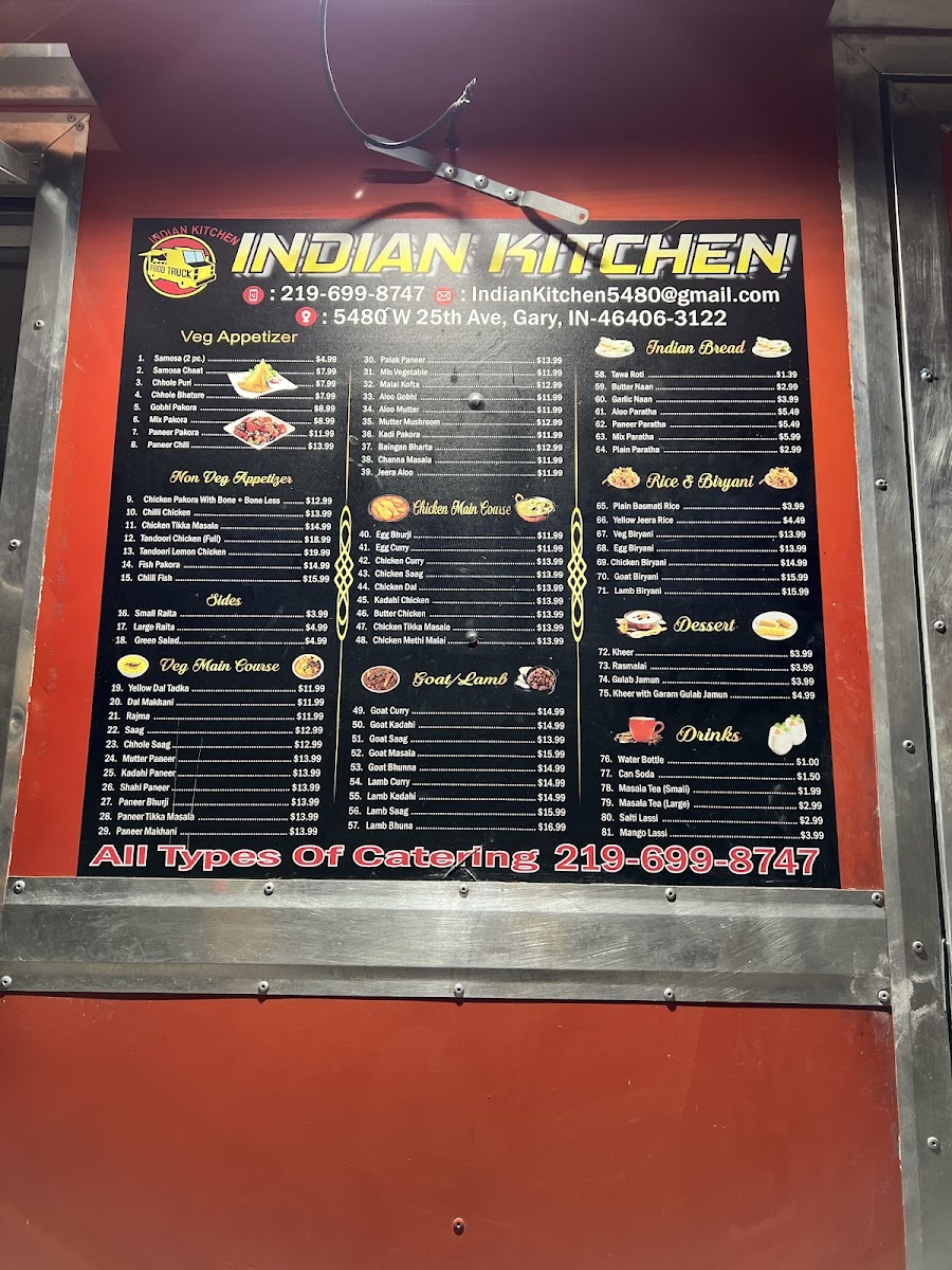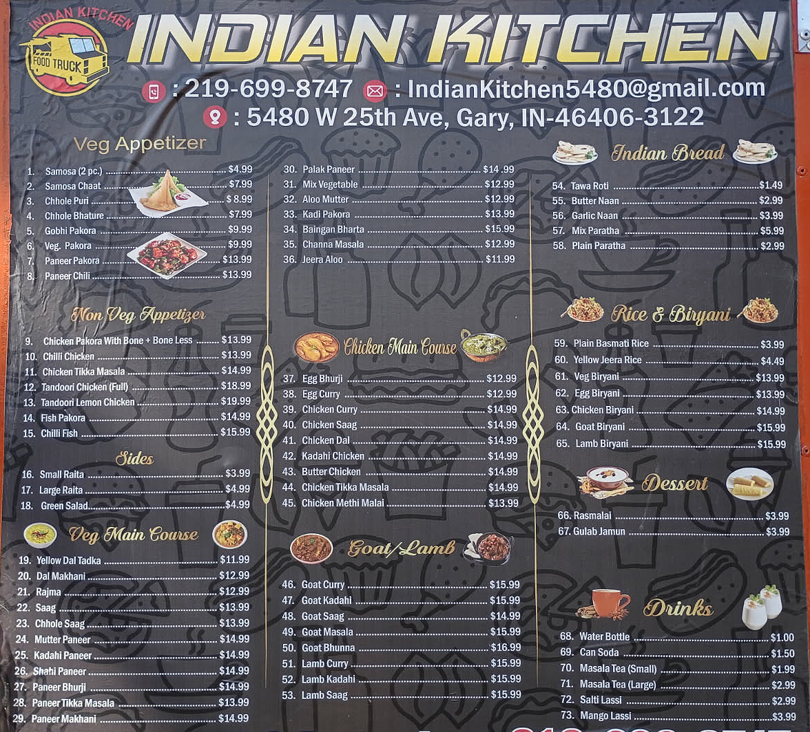 Goat curry typically includes goat meat simmered in a rich blend of Indian spices and herbs, served in a thick, aromatic gravy.