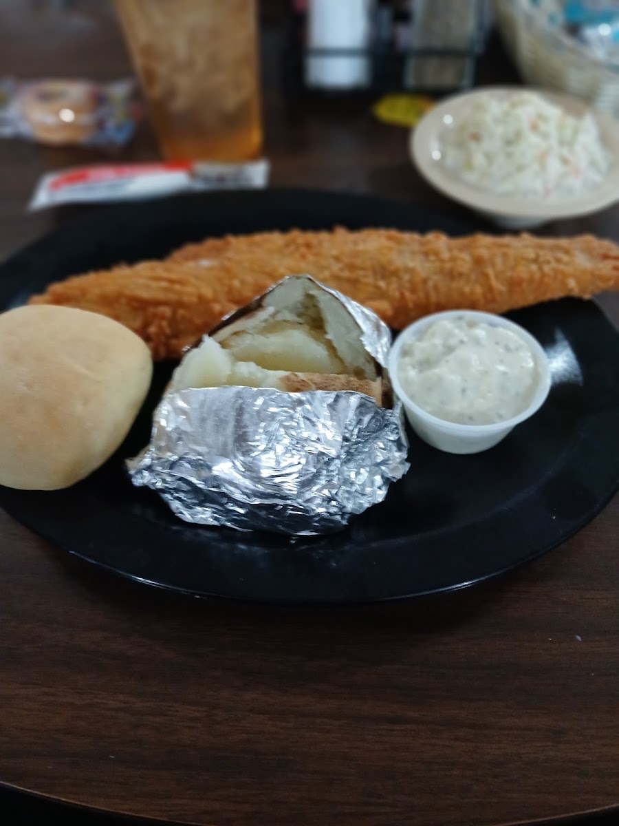 Had the cod and baked potato, food was hot and fresh and tasted great. Service was excellent and all the girls and customers were great