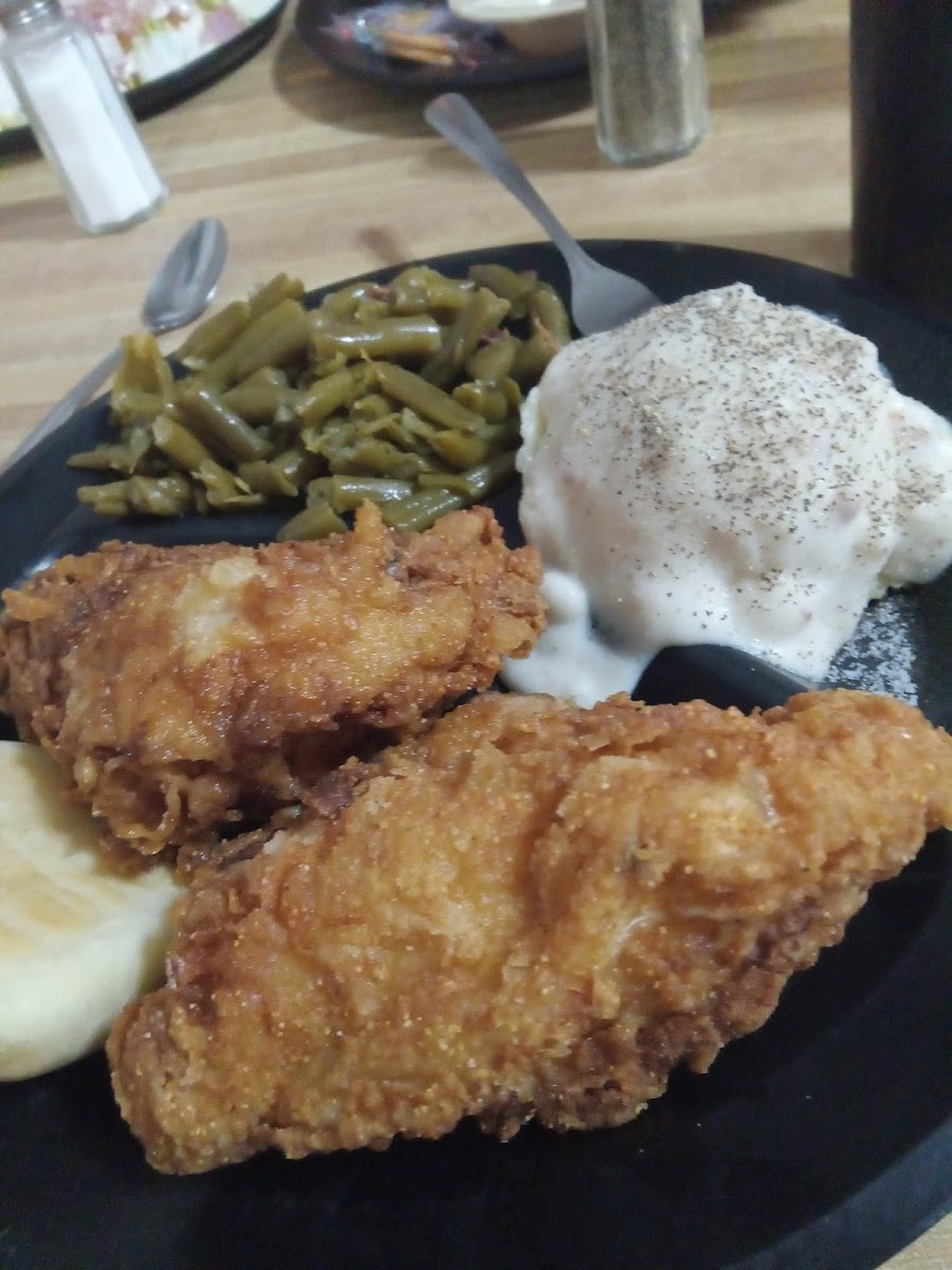 We had Homestyle cooking. Very large proportions. Had the lemon icebox cake for dessert which was delicious. Had great service. Never had to wait for drink refills.