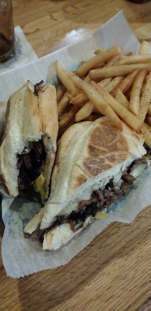 It was a good place to have a quick drink and not you expensive about 4 bucks for a whiskey and juice drink Edit i tried the stromboli with ground beef and double pepperoni cause they're out of sausage and it's not good the beef was just greasy ground beef no other flavor at all. I can't taste the pepperoni at all My wife and daughter got the Patty melts and they said they were great I'm basing my rating on the stromboli. It's inedible