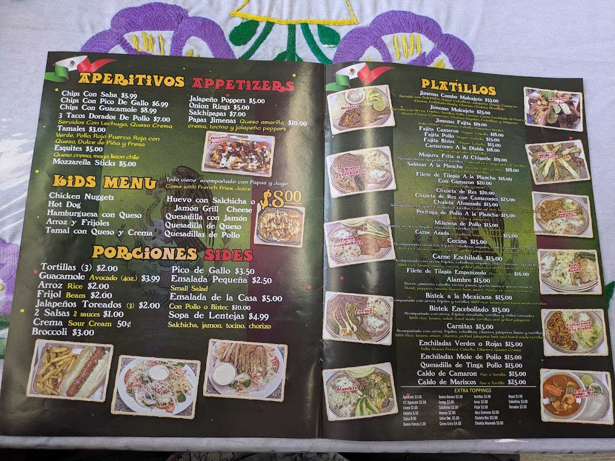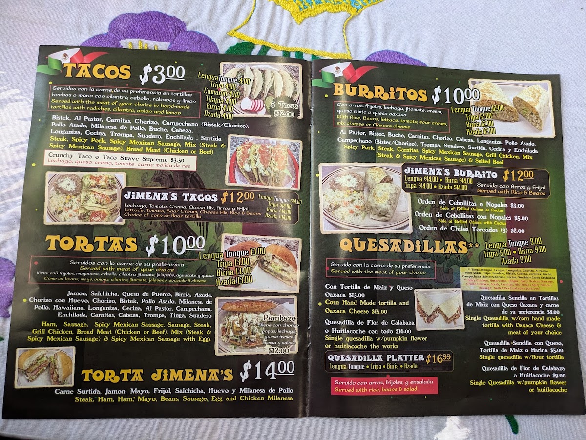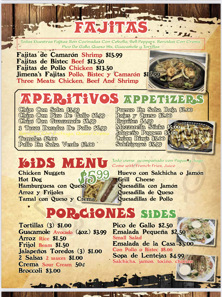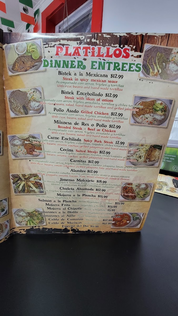Verde, pollo, rojo, puerco, roja con queso, dulce de piña y fresa. / Green, chicken, red, pork, red with cheese, pineapple dulce or strawberry.