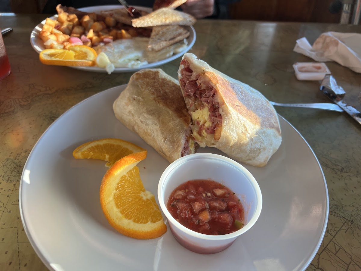 When on vacation and we find a restaurant we really like we tend to go several times. This was the case at Jodie's Cafe. It was their grand opening weekend and the staff could not have been more accommodating! We ate breakfast there twice and dinner once and had wonderful meals every time. The dining room was comfortable with nice views over the water. Sausage gravy with biscuits is a favorite and theirs did not disappoint! Dinner was excellent - shrimp and grits - a little spicy for me, but should not have surprised me as I know how it's made. Despite the heat, everything was cooked perfectly. Perhaps the absolute best thing I ate anywhere that weekend was the corned beef hash burrito. The corned beef is house-made and absolutely delicious. The burrito was stuffed with this and cubed hash browns with peppers and onions, cheddar cheese and scrambled eggs. The whole burrito was lightly fried and not at all greasy and I could eat another one right now! The bakery case had many scrumptious looking items and we tried the peach pie and blueberry crumble pies. Yum! I highly recommend Jodie's.