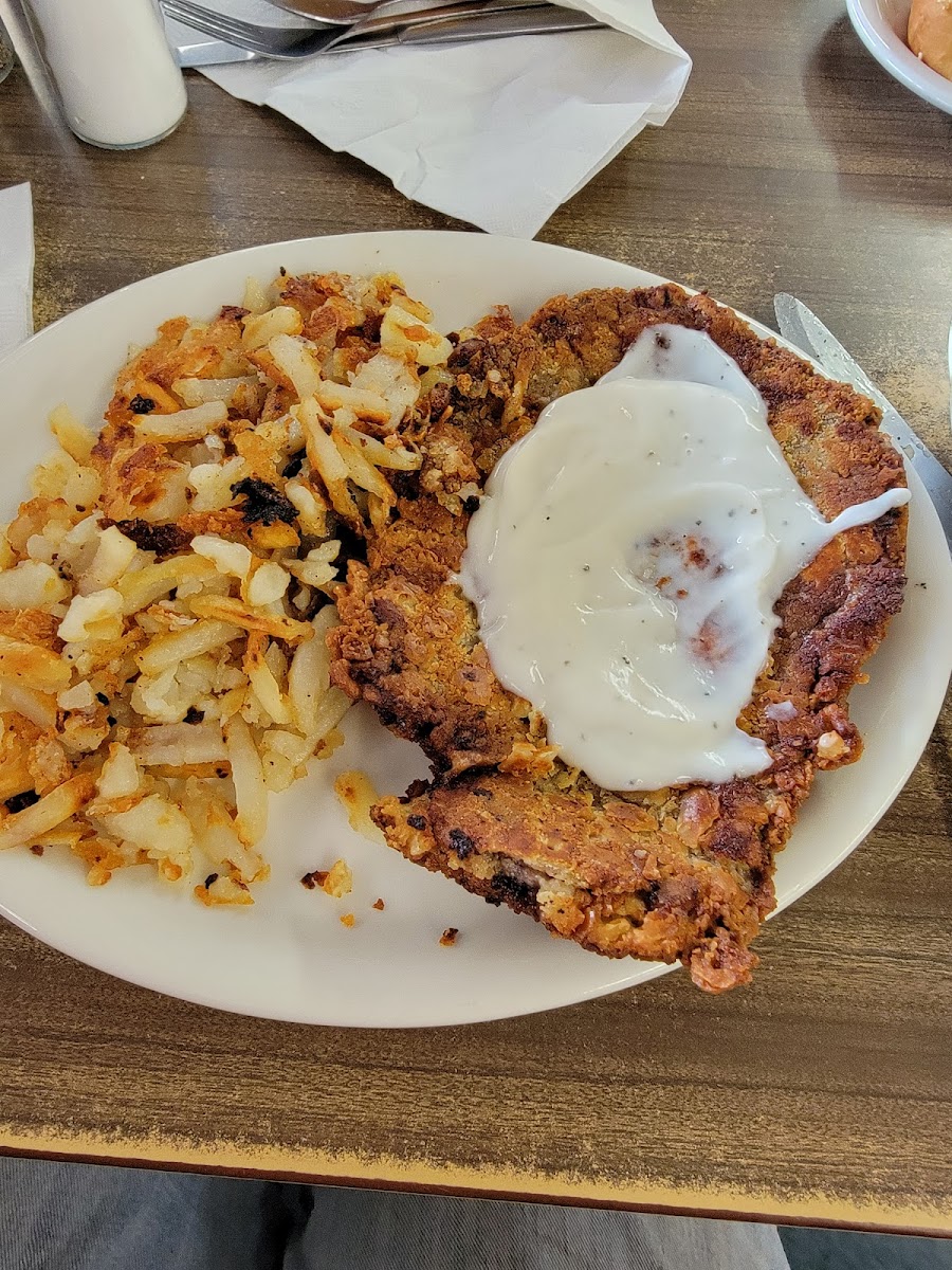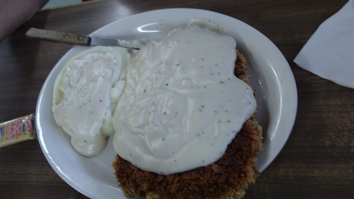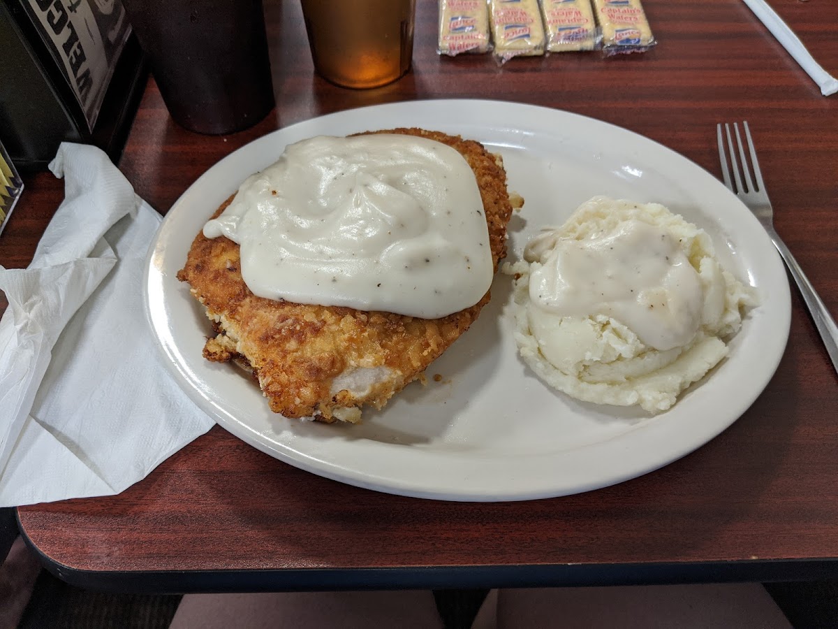 Everyone was nice. They were so busy and had to open an extra room for us. It was after 10 am, so no more pancakes. We both decided on lunch. I had 2 piece chicken lunch with mashed potatoes and gravy and a salad. My husband had a combo hamburger deal, which included a hamburger, french fries and 3 onion rings. The food was so good and very inexpensive.