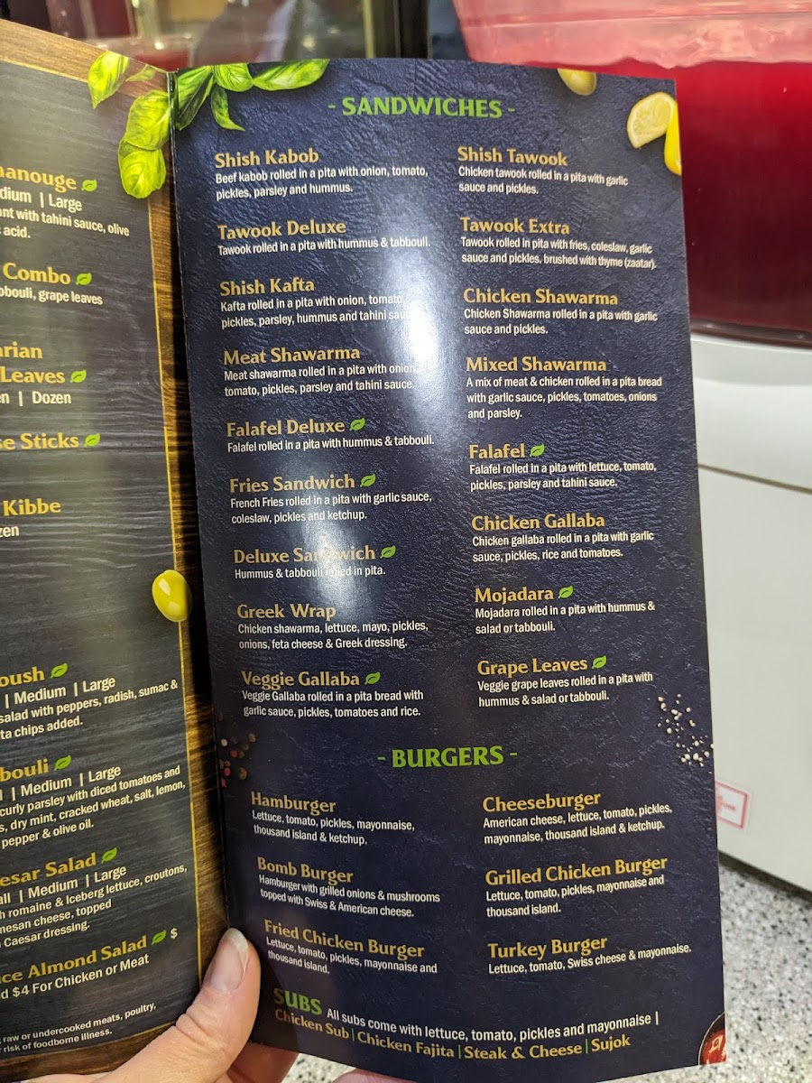 Mojadara rolled in a pita with hummus, lettuce, Tomato, Pickles.
