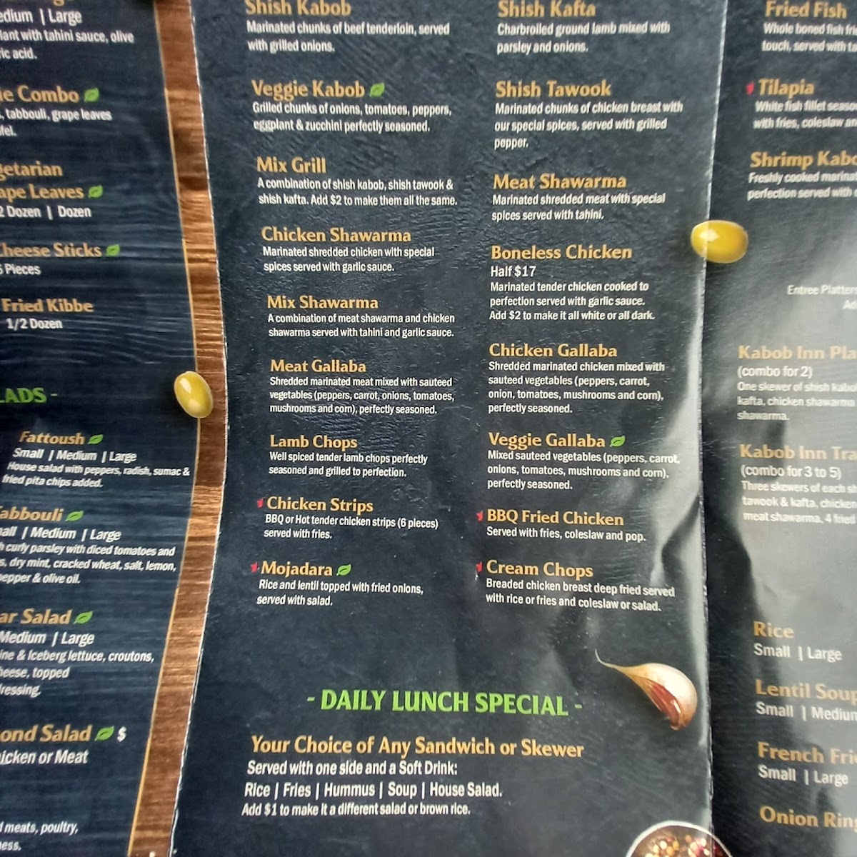 Whole boned fish fried with our special touch, served with tahini sauce