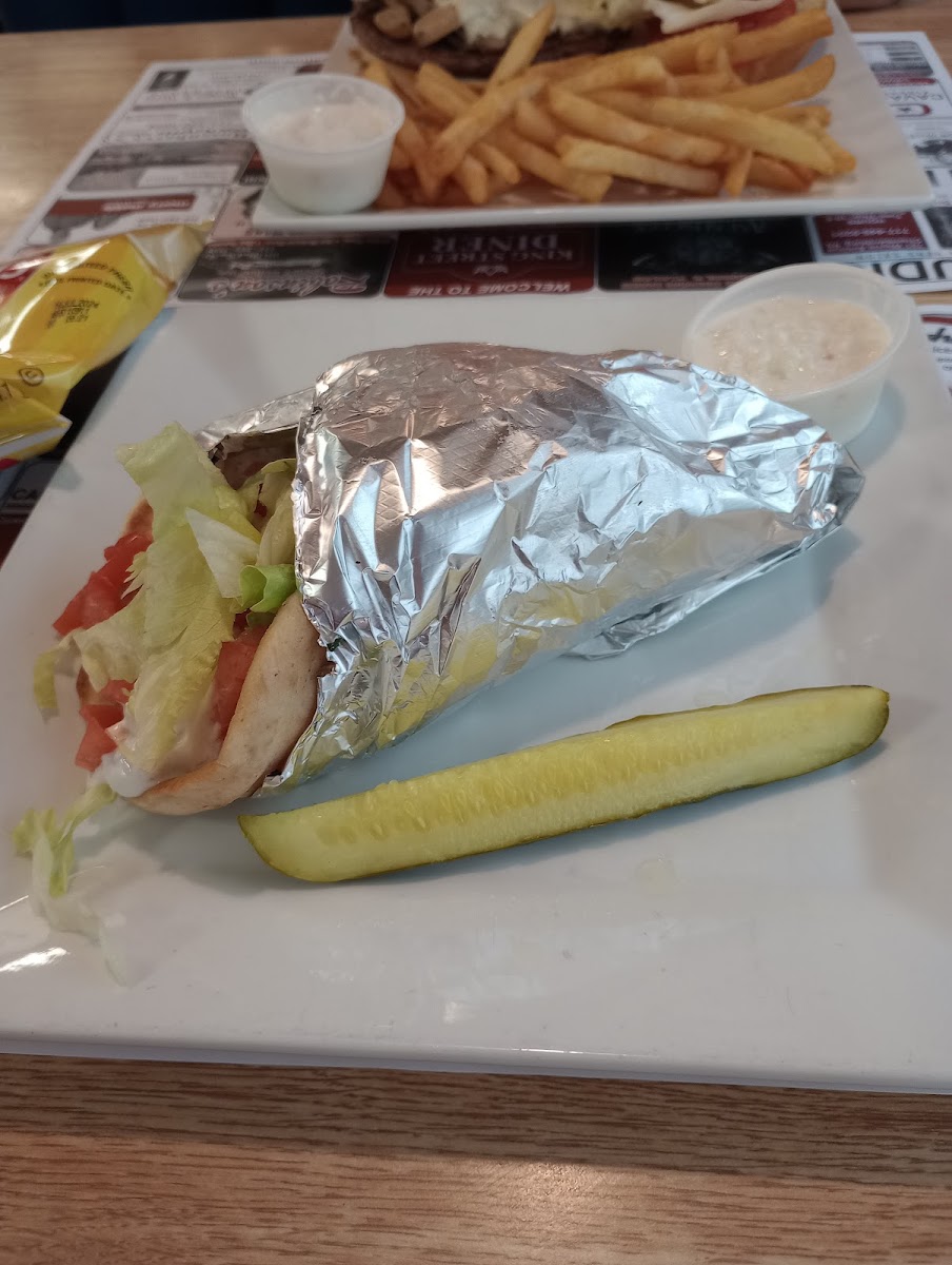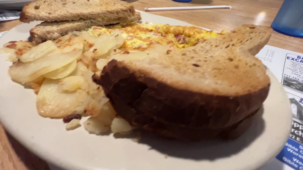 Nice diner in downtown Shippensburg right along the main street. Has indoor and outdoor seating. Has a very large menu with lots of food options. Serves breakfast all day. Recommend breakfast (large portions) and the chicken salad wrap. Friendly employees. Reasonable prices. Have customer restrooms. There is plenty of parking lot parking.