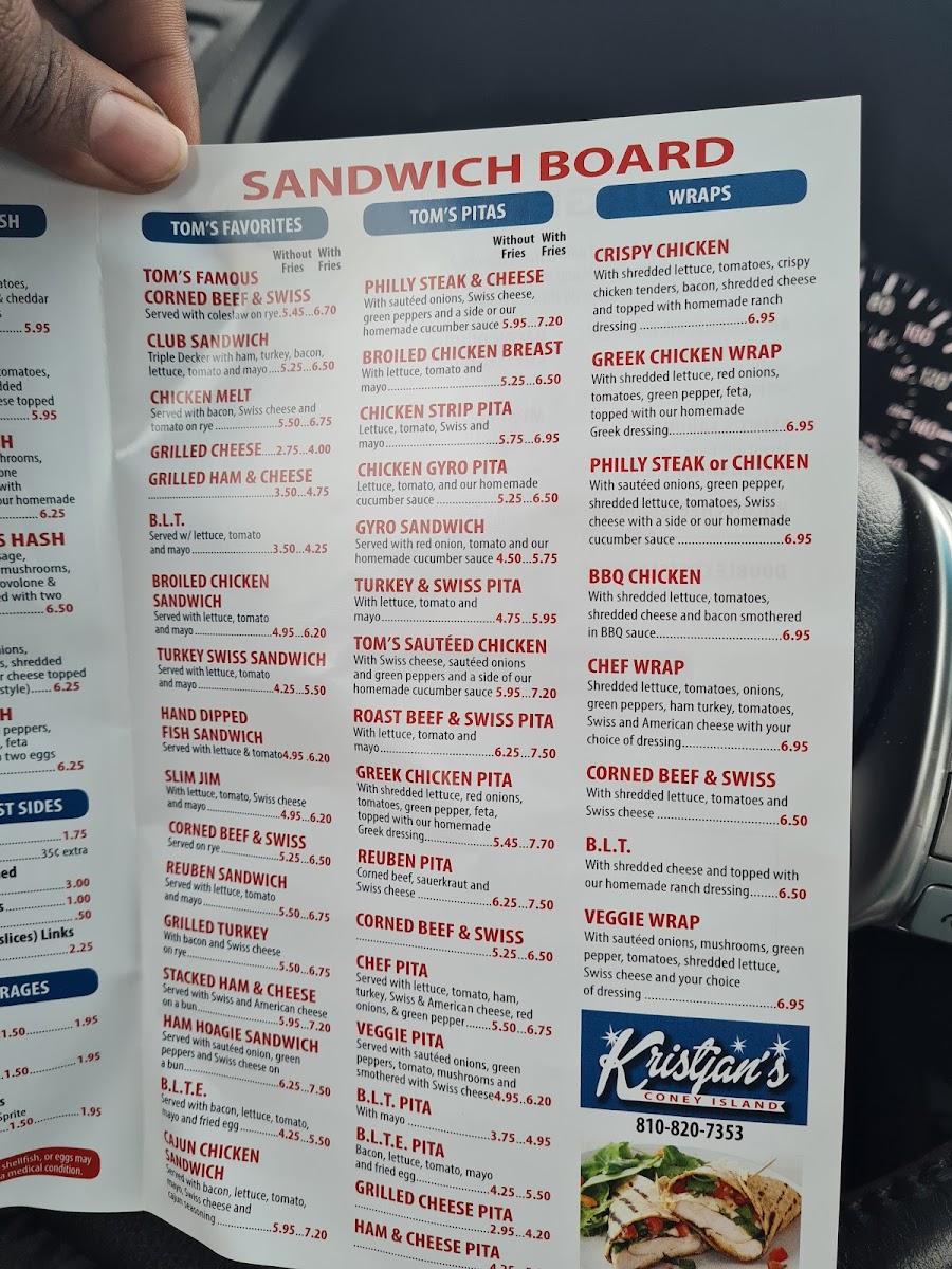 Shaved steak or chicken, green pepper, sautéed onion, Swiss cheese and a side of homemade cucumber sauce.