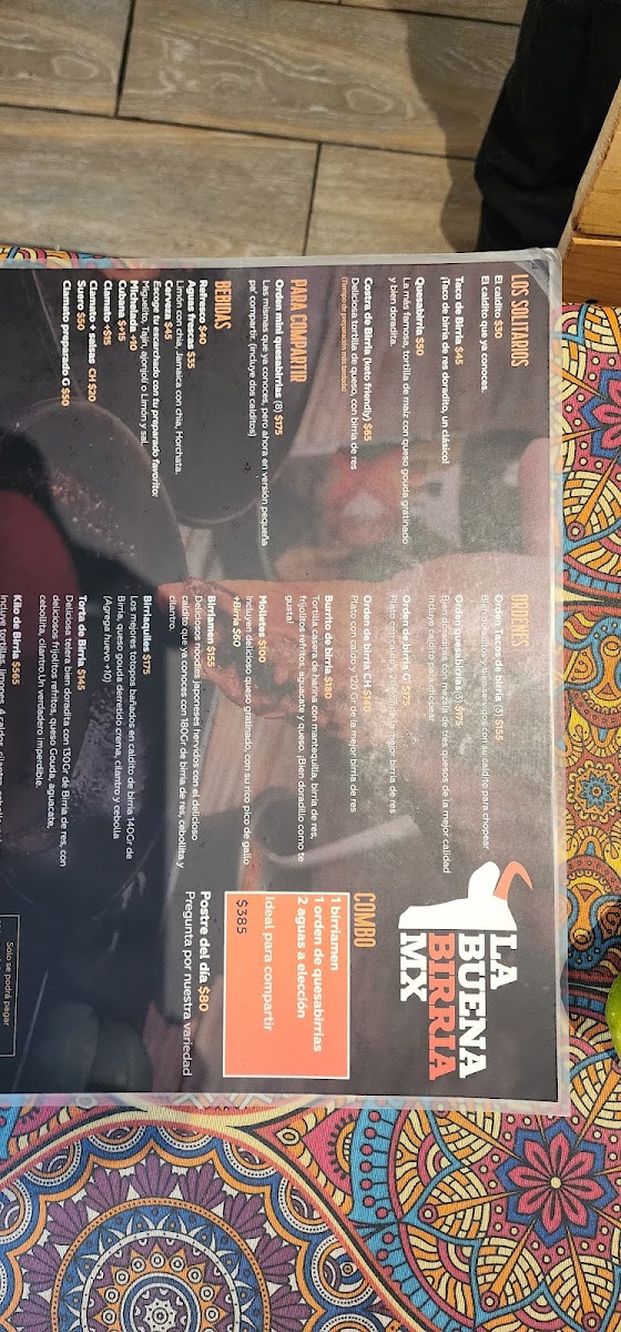 La Buena Birria Mx Rio Lerma Menu