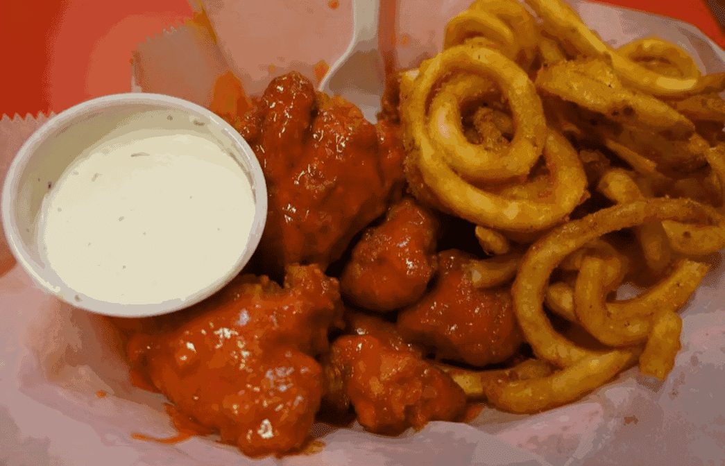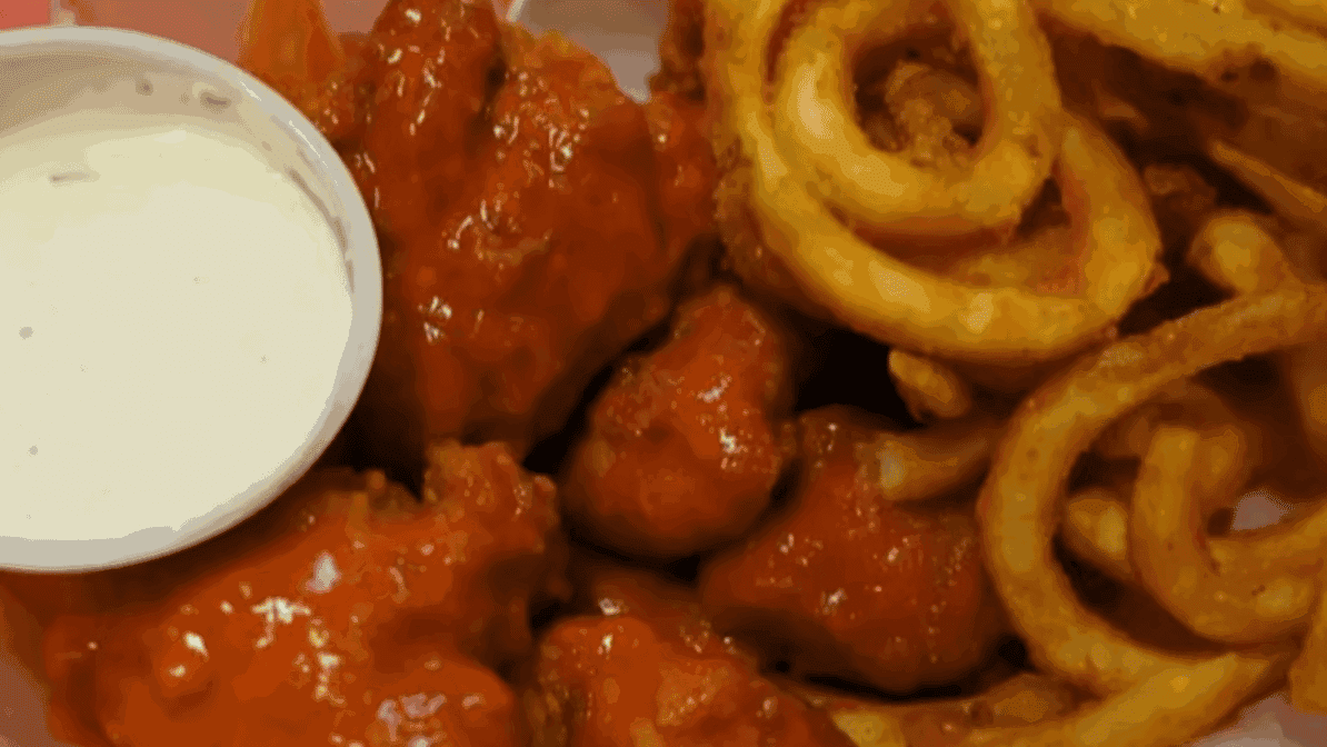 Wings were crispy! Just the way they should be. Onion rings were great.