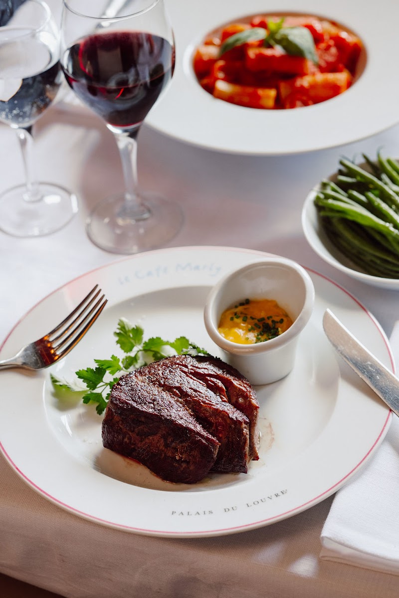 The service was excellent – truly attentive and professional. Make sure to book in advance, otherwise it’s almost impossible to get a table. The food was delicious, the atmosphere elegant, and even after 8 years I felt the same emotions coming back. For the best photos: either from the outside alley or upstairs near the window when you go towards the restroom – absolutely stunning views of the Louvre!