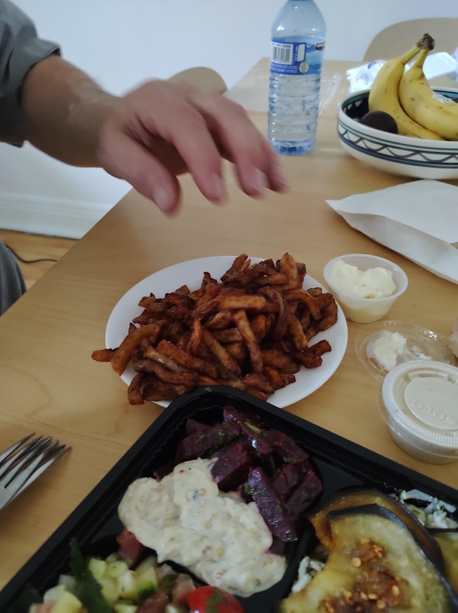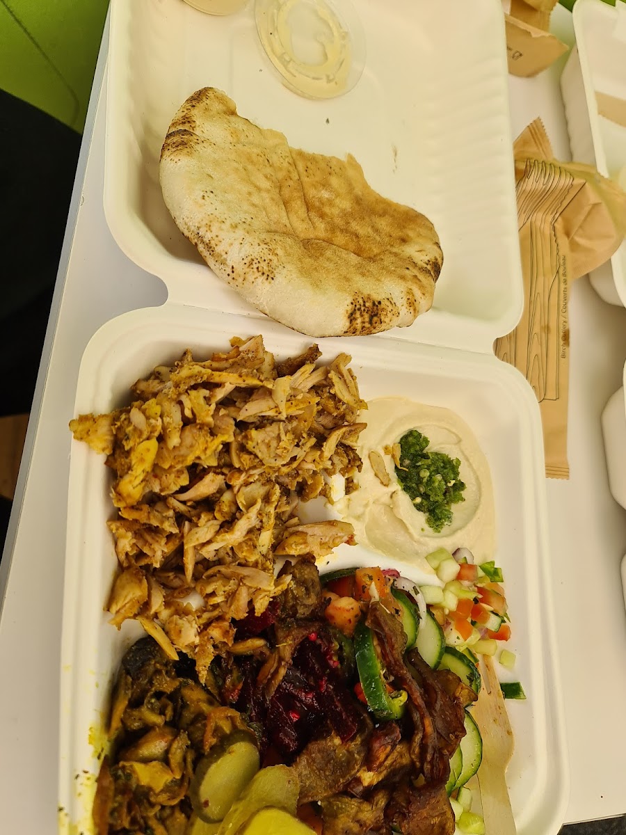 Fresh and delicious food! I have never tasted the hummus any better! Staff is really courteous and welcoming. The portion sizes are decent and the staff doesn’t shy from adding an extra thing or two. Owner was very kind in quickly arranging the outdoor tables for us to use even though we reached right at the store opening time. All in all 5 stars!