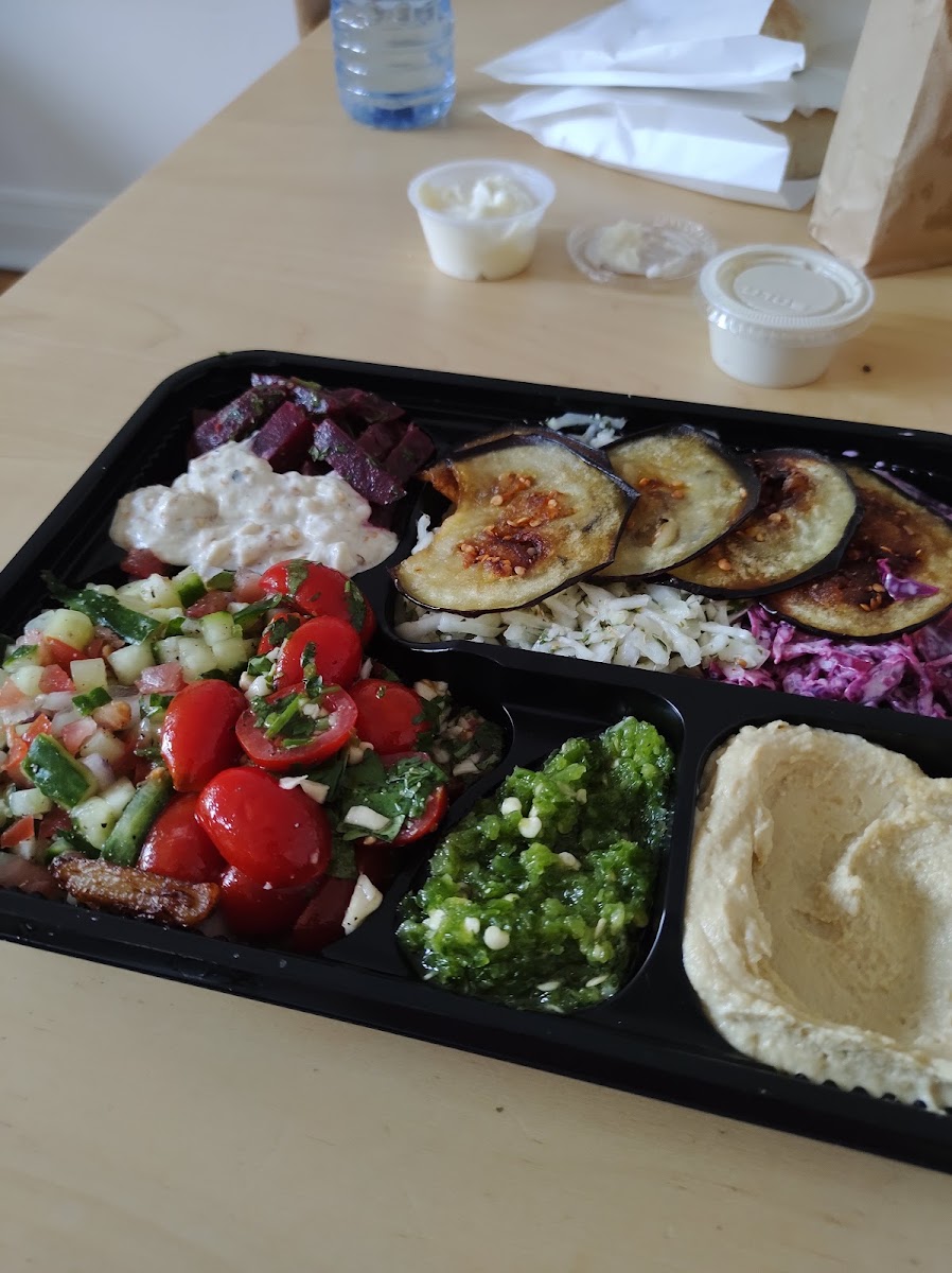 Wooow woow wowww Best falafel/ Sabich / Shawarma spot in Montreal!! Ambiance super welcoming super friendly and just a crazy awesome vibe !! I got lunch for the entire family The falafel pitas were frkn incredible! So jammed packed they make the pitas with laffa bread it’s thicker and super soft and fluffy wow yum and just super filling The shawarma had amazing flavour reminds me of my homeland ! The sabich… (vegetarian) mmmmm again they jam packed my pita sandwich with the traditional eggs / eggplant / tchina hummus sauce harif ( spicy sauce) pickles red cabbage I swear it was the best sabich I had since I’ve been to Israel! This is going to be my go to for sure! EVERYTHING is FRESH!!! Made on the spot so it takes a dew minutes to get your order if you don’t want to wait maybe order ahead… but it’s sooo worth the wait it’s super mouthwatering everything The hummus was creammy delishhhh wow Shawarma hands down one of the best in the city! And let me add it was kosher ! Super authentic and they really are generous with the portion size vs price Overall,super happy I found this new found gem can’t wait to be back here soon Totally recommend!! Cheers!