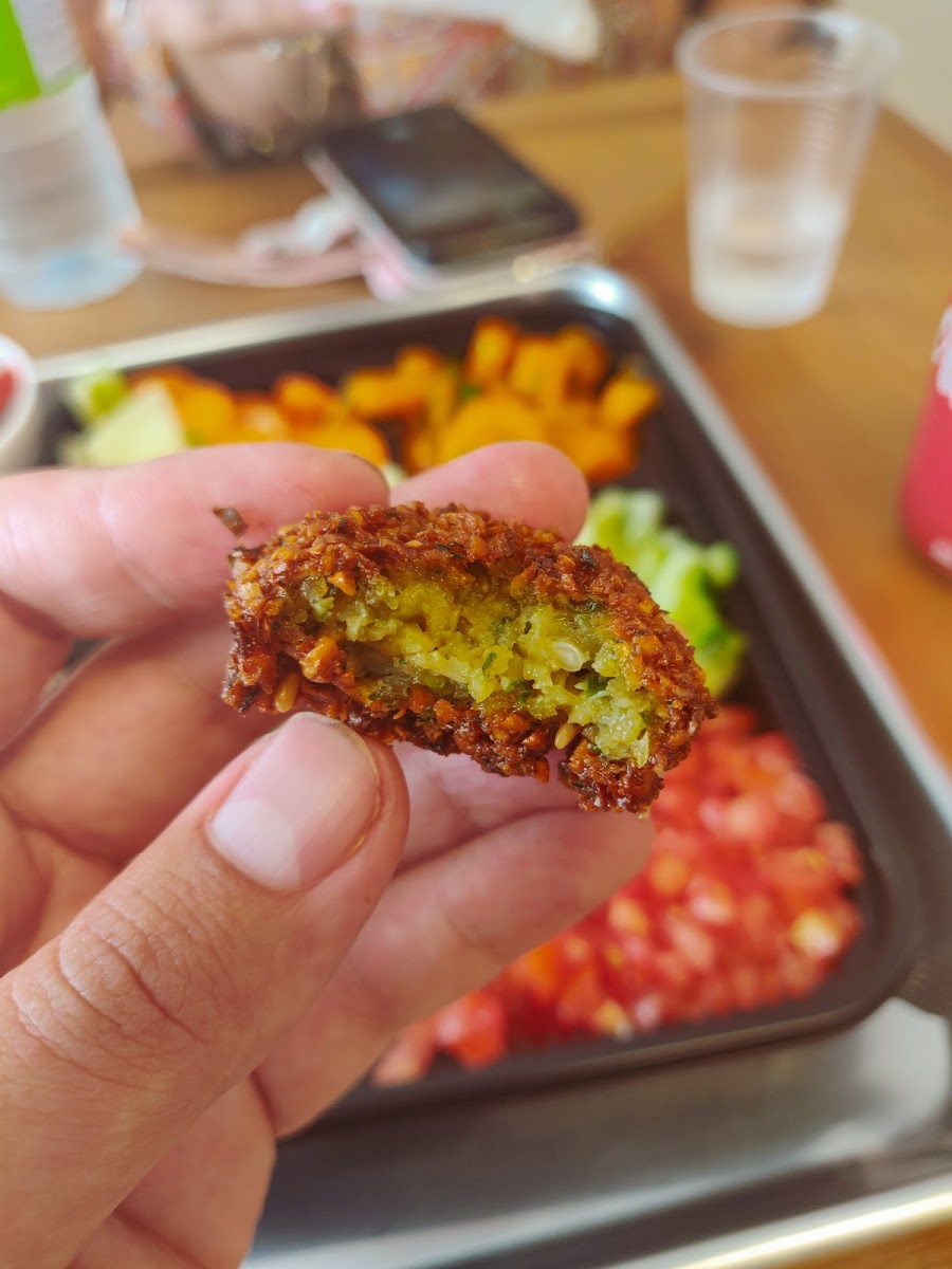 I don’t like falafel but I love *this* falafel. Very fresh and best pita I ever had. My only feedback is to include more bread with the plate. It’s too much food to eat with one pita.