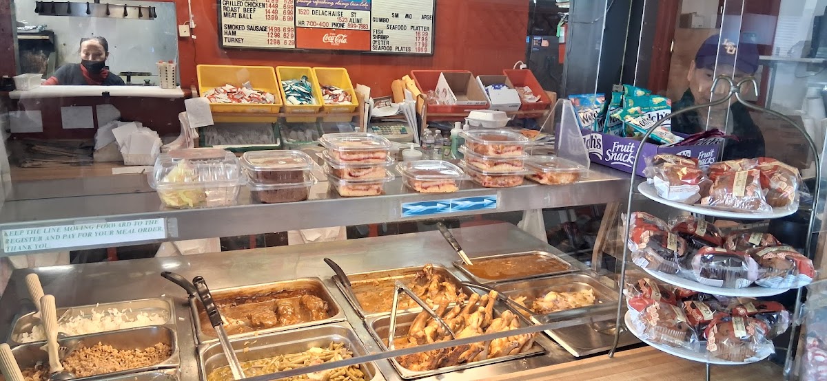 Food is very good, well seasoned, with chunks of ham and pork, sausage, plenty enough food to fill you up. I had the every monday southern meal, red beans and rice, with a smoothered porkchop, and a side of french bread. Taste was good, price was below 15 dollars with tax, and more than enough food on the plate to have it to go! The area is not great, but its close to alot of bussinesses and close to St Charles ave. Over all, i will be back to try other hot food plates they will have later on. Their AC might not work well, but hopefully they ll fix it soon, bc these dog days of summer is pretty brutal.
