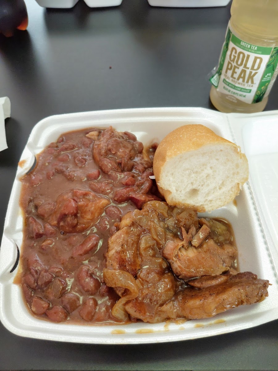 Food was excellent and the people were very friendly. No Frills dining. Definitely not overpriced! Smothered pork chop and red beans and rice