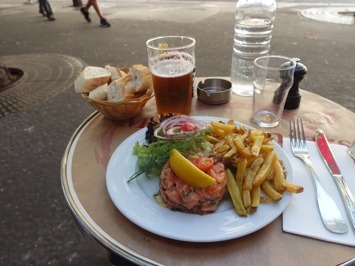 Perfect Parisian bistro and terrace experience. The host at the entrance was a tattooed guy, didn't ask his name, but great bloke and deserves a raise. Great atmosphere and ambiance, staff spoke perfect English and were incredibly polite and friendly. They were relaxed and understanding about me working from laptop there and even taking a meeting, didn't try to rush me out. I thought this is too good to be true, what's the catch? No catch, food was delicious and reasonably priced, service was quick and accommodating. I'll be back!
