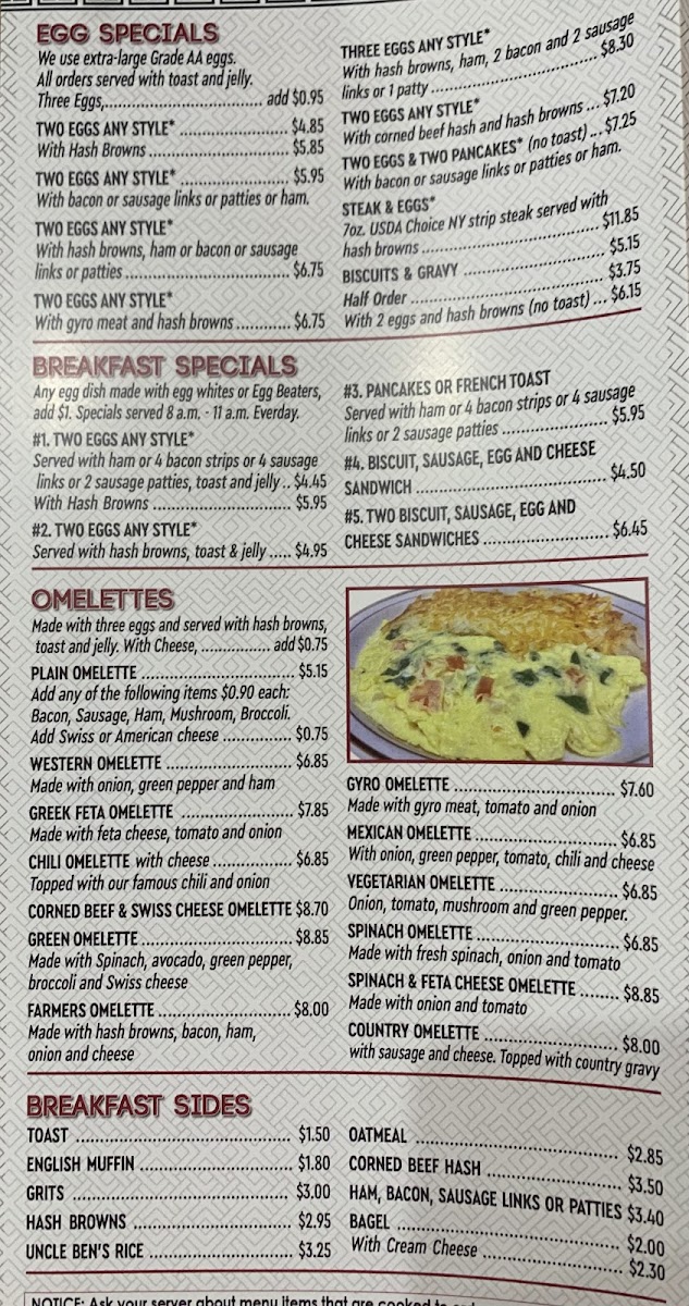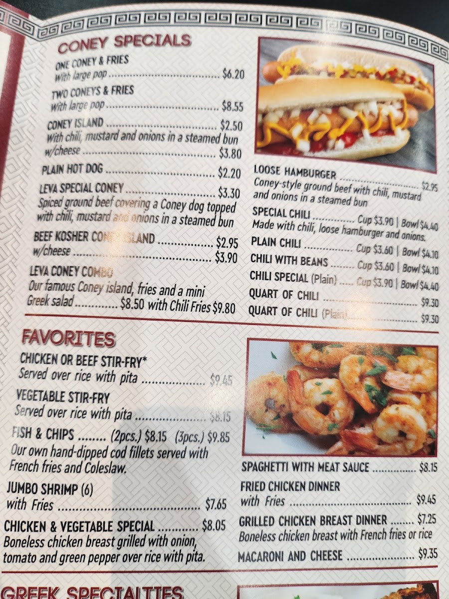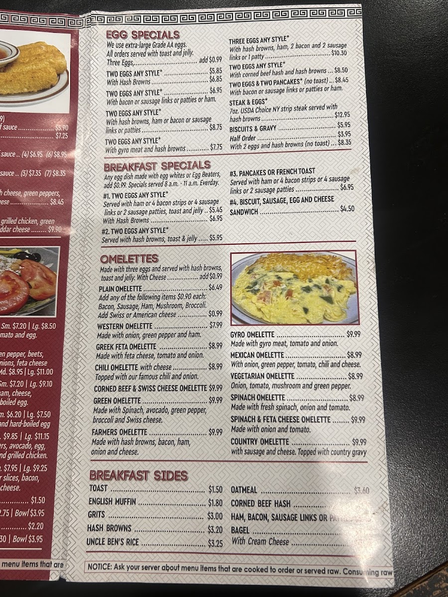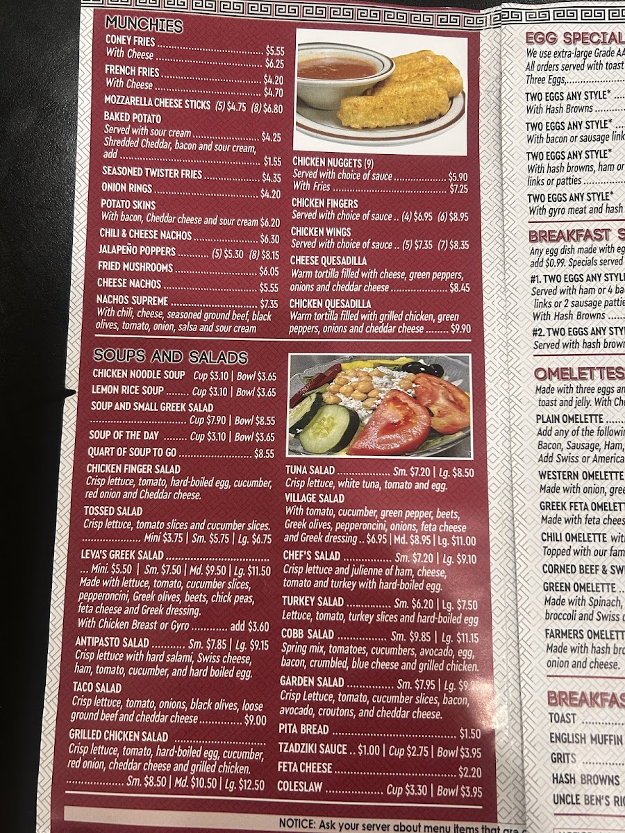 Greek salad paired with soup. Options include various sizes from cup to large.