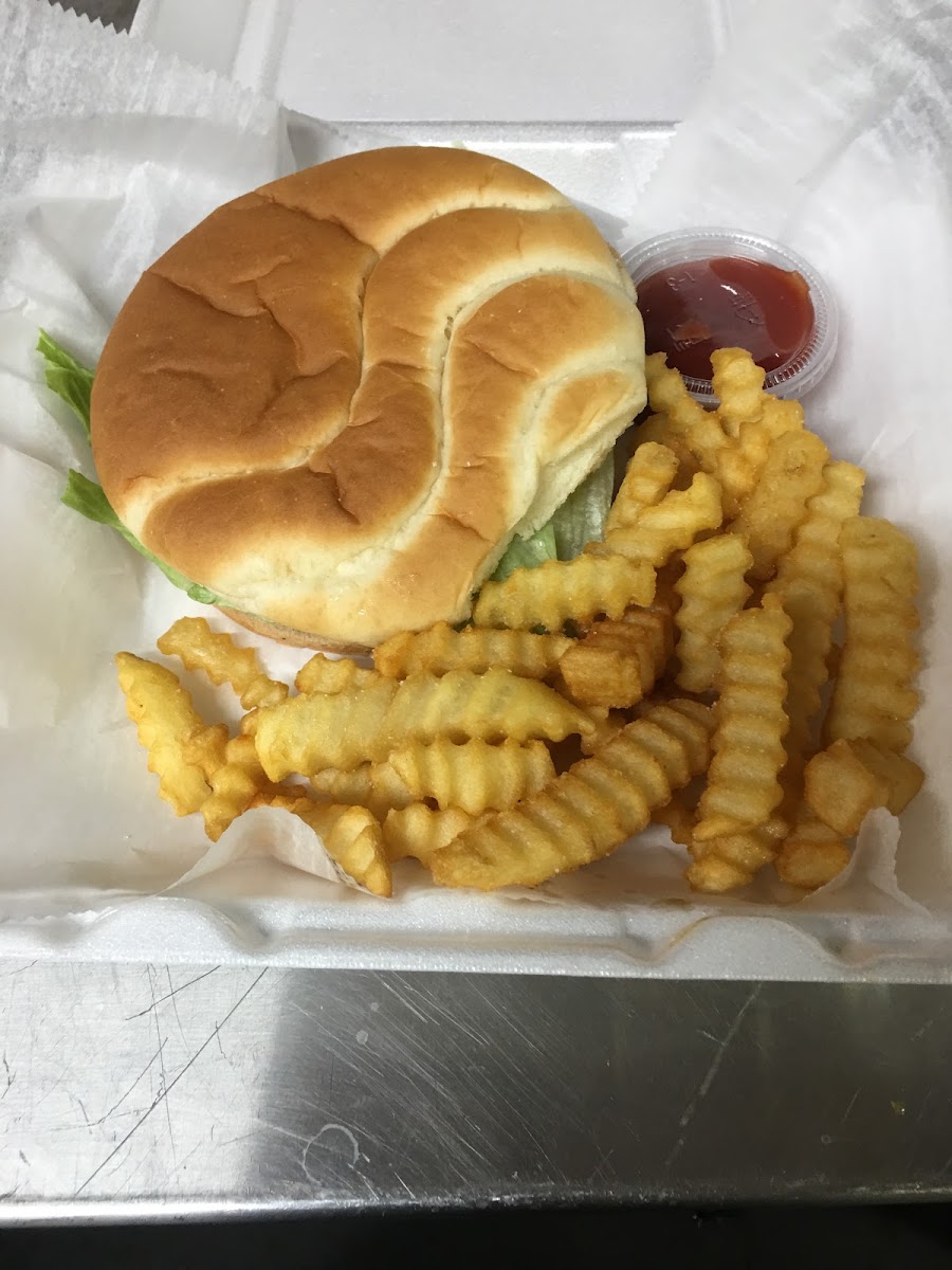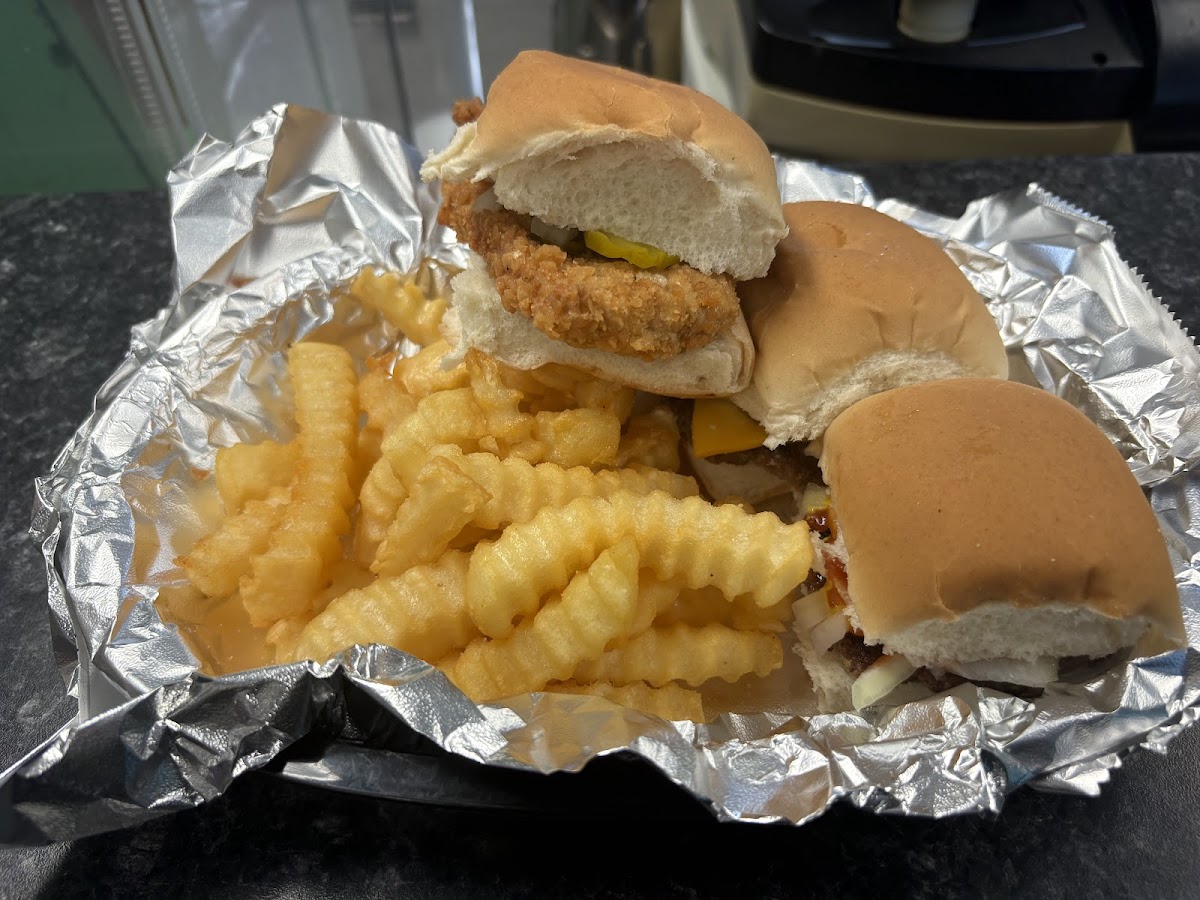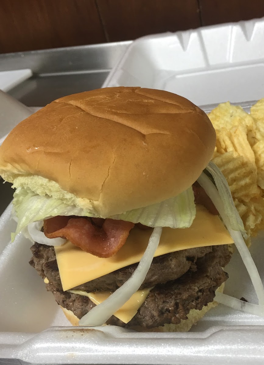 One of best burgers served in a 50s style small and warm friendly burger stop. Great tenderloins and a great menu. Next time will dine in and sit at the counter on the old school stools. Plenty on the walls and inside to pass the time waiting for food. Which the wait time is not very long. Worth the drive from any where. Probably only seats a dozen or so. Not sure but just bring your wife and enjoy a real trip..