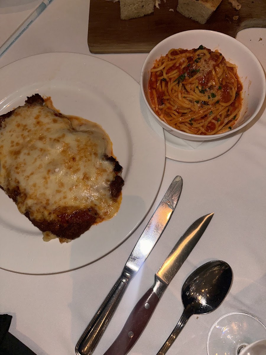 I ordered the Chicken Parmigiana and it was exactly what you want from the classic—crispy, well-seasoned breading, tender chicken, and a generous layer of melted cheese with a bright, rich marinara that didn’t overpower the dish. The pasta on the side was perfectly cooked and held the sauce well, making the whole plate feel balanced and comforting without being heavy. Big credit to our server, Georgio, who made the experience even better. Friendly, attentive, and professional—checked in at the right moments, kept everything moving smoothly, and made great recommendations without being pushy. Great meal, great service, and I’ll absolutely be back.