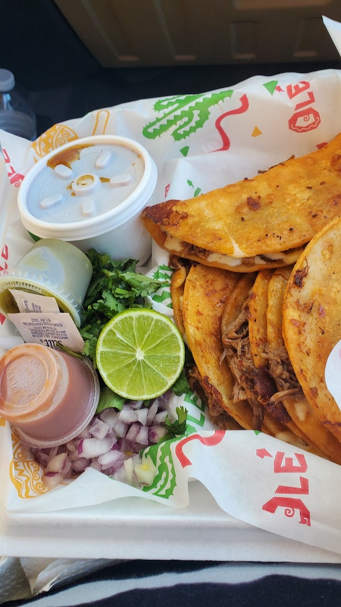 Food truck! Some of the best birria tacos I’ve had! It’s a cute spot with outside seating and a cute drink/ dessert place beside it. You get 4 tacos with meat and cheese and a small soup to dip them in with some good spicy sauces on the side. Red onions and cilantro on the side with a lime to squeeze on top! These tacos almost melt in your mouth! Would definitely recommend. I’m in Fort Stockton for work and me and my co works love stopping my the truck for dinner at the office!! They are closed Monday’s and Tuesday’s unfortunately, but food is fantastic! Quesadillas are also amazing!
