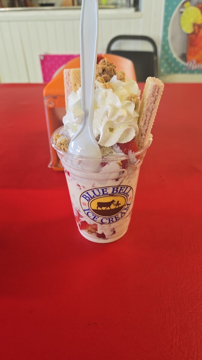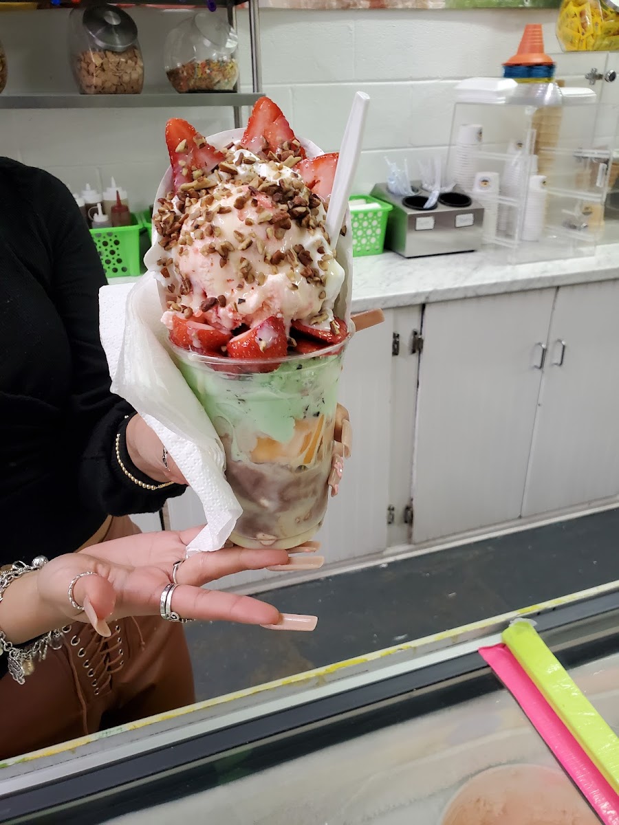We Googled places to eat off i10 on our way to Corpus Christi and we were not disappointed. We ordered the 'papas preparadas' (fries,avocado, carne, cheese, jalapeños, cilantro, red onions, and two salsas) and mini quesadillas. The food was prepared quickly. It was so good that I only thought to take a picture halfway through the meal, and the kids already ate their quesadillas. It was nice to have dessert conveniently located in the same parking lot.