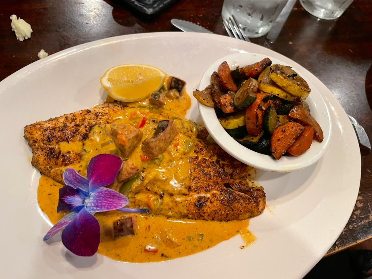 Great food, wine and atmosphere. We both had delicious ribeyes and a calamari starter. The banana cream cheese desert was awesome!