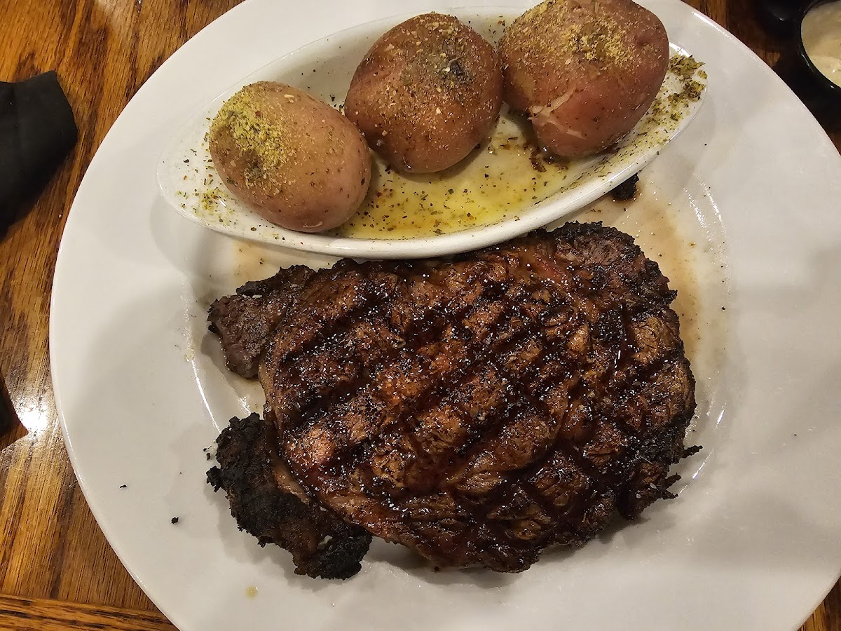 50 years of eating steak and I have never had anything that was so amazing. RibEye as shown in picture was cooked medium rare. I've never eaten a steak so slowly to savor every last taste as the meat melted in my mouth. The staff, the owner(s), the family atmosphere, the music, and everything, made us feel so at home. Thank you for this great gift to celebrate a special day with mother who I see once a year. God Bless you all for this gift of such amazing food. Be sure to read the history of how this meat comes to be. This family has quote a history. Hand to God I would drive 200 miles and get a hotel for the night just to eat here. Luckily we live a few miles away. Wow!!!!!!