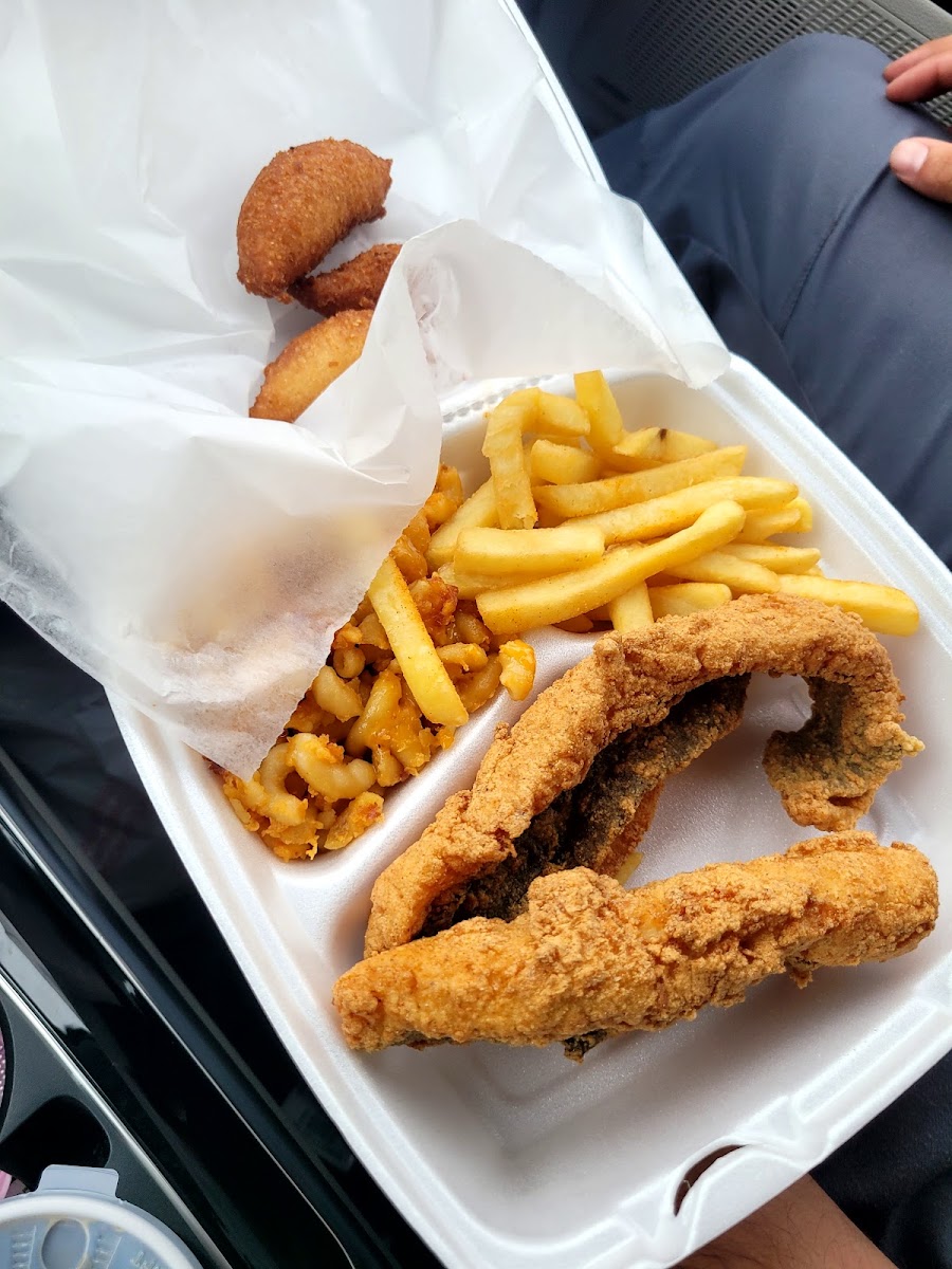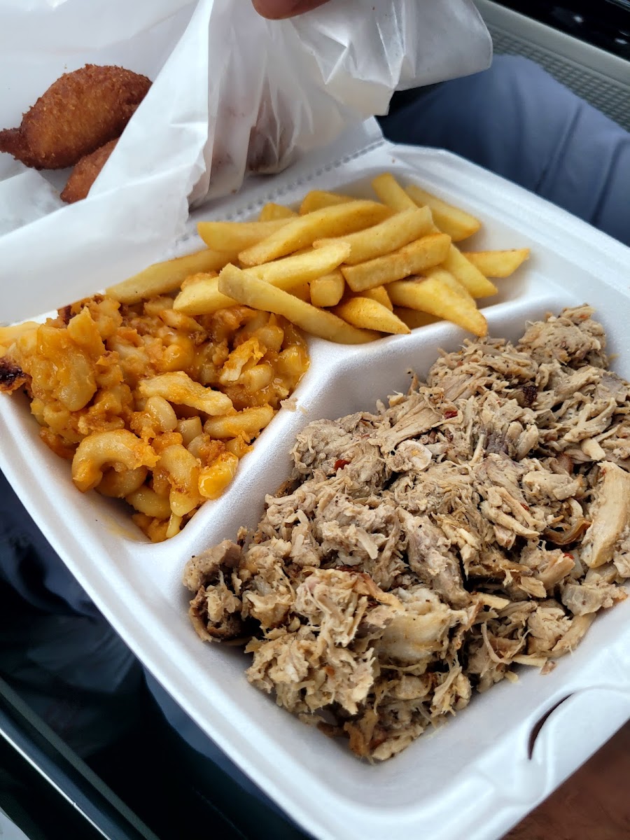 Stopped in while meeting up with a friend in Cove City.. Lucy's Boyz did not disappoint. My husband got the fish, and it was so good (and I dont even like fish usually) The fried chicken and pulled pork was yummy too. Def worth a stop!!