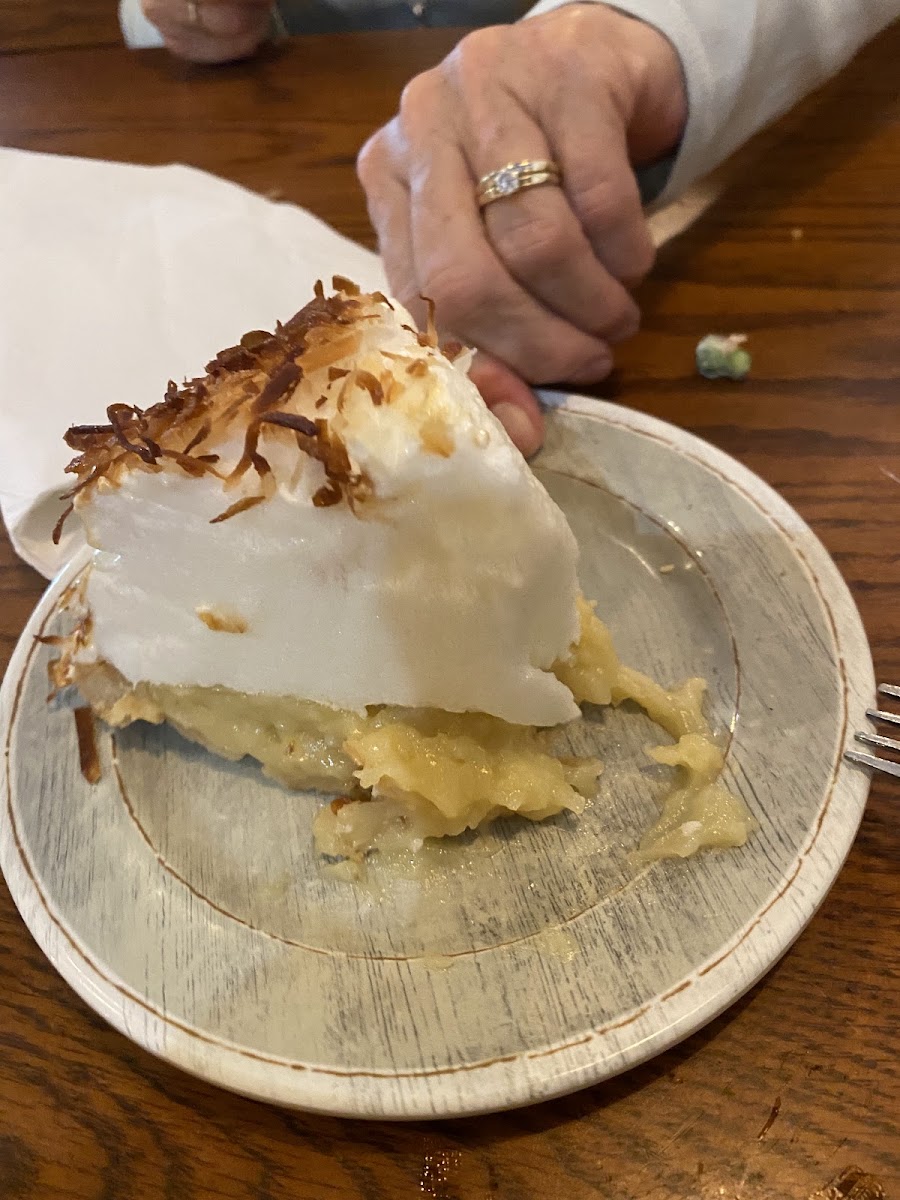 What surprise. Excellent food and service by Stephanie. The sauce for the blooming onion is just wonderful and the blooming onion would be a meal in itself. Had the shrimp skewer (not pictured) with a baked potato and even though I was stuff I decided to get the coconut pie and go for complete system shutdown. I’ll be back.