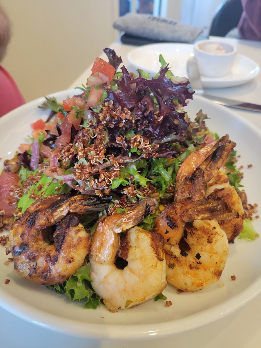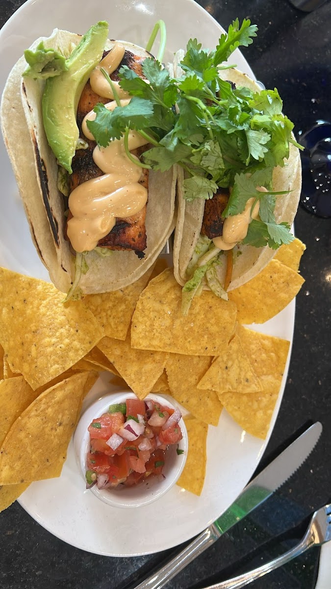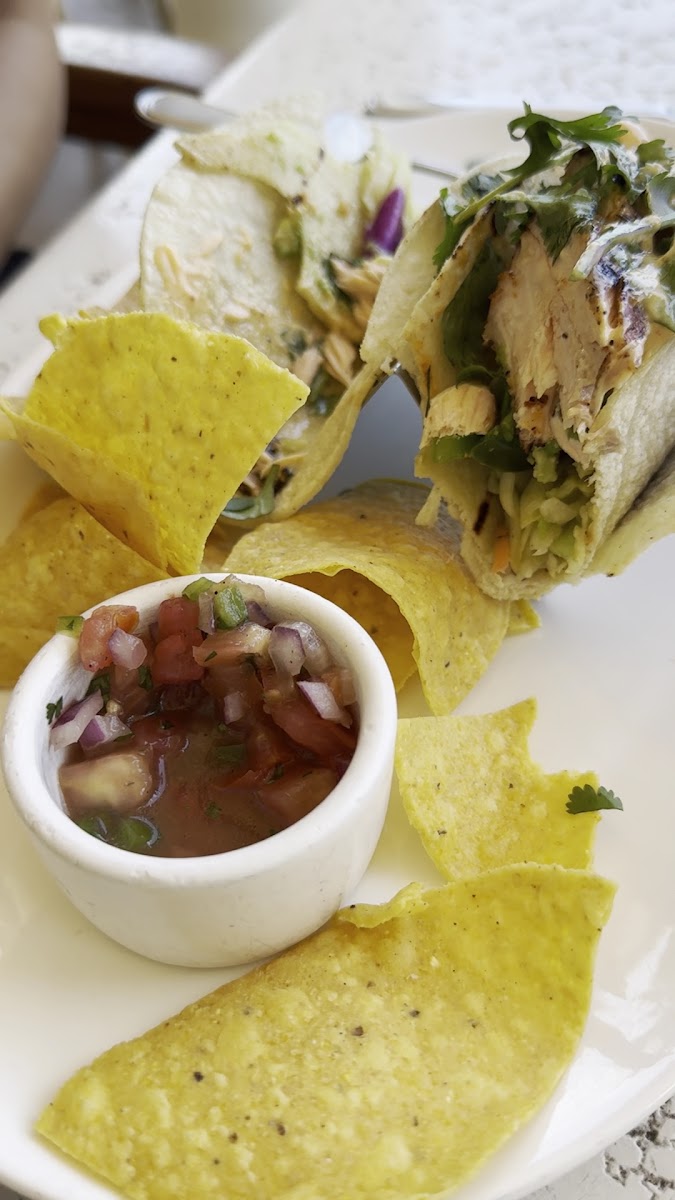 Pleasantly surprised with this little back door department store balcony. Lively atmosphere and although it was busy, our waitress was doing her best and rushing around. All i can say is it appeared like she could use some help. We only tried a couple dishes but loved them both. My expectations were actually lower that what we received. Two thumbs up for the grilled steak sandwich. I ordered it rare and definitely enjoyed. The cheese and jam go well on sourdough. We also had the salmon tacos and ordered some extra fresh jalapeños on the side. I would recommend either if you have a bit of an appetite. The balcony has overhead fans but is great for cooler weather or evening meals, it does get hot midday.