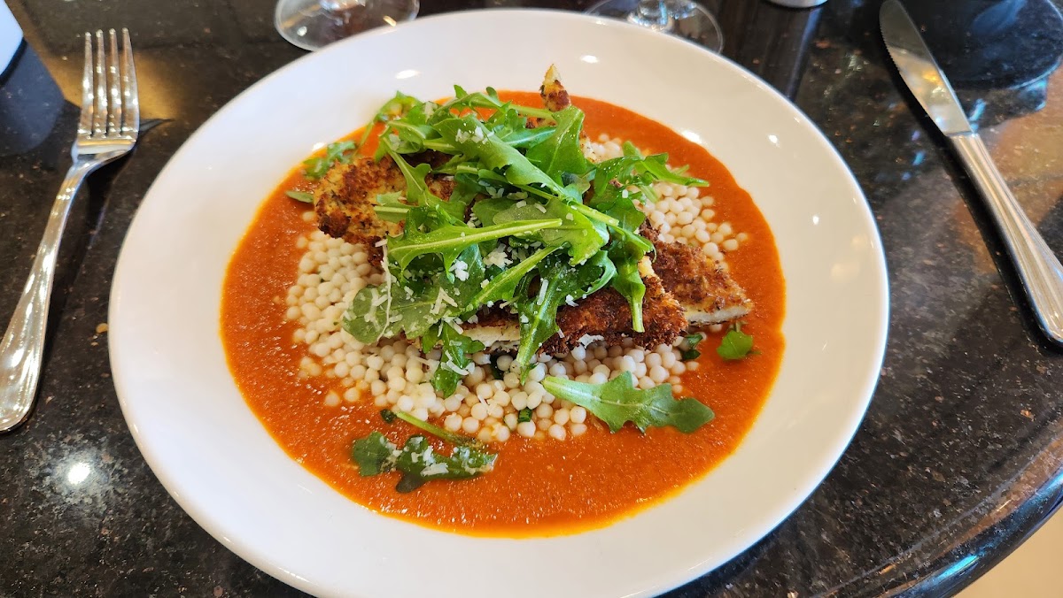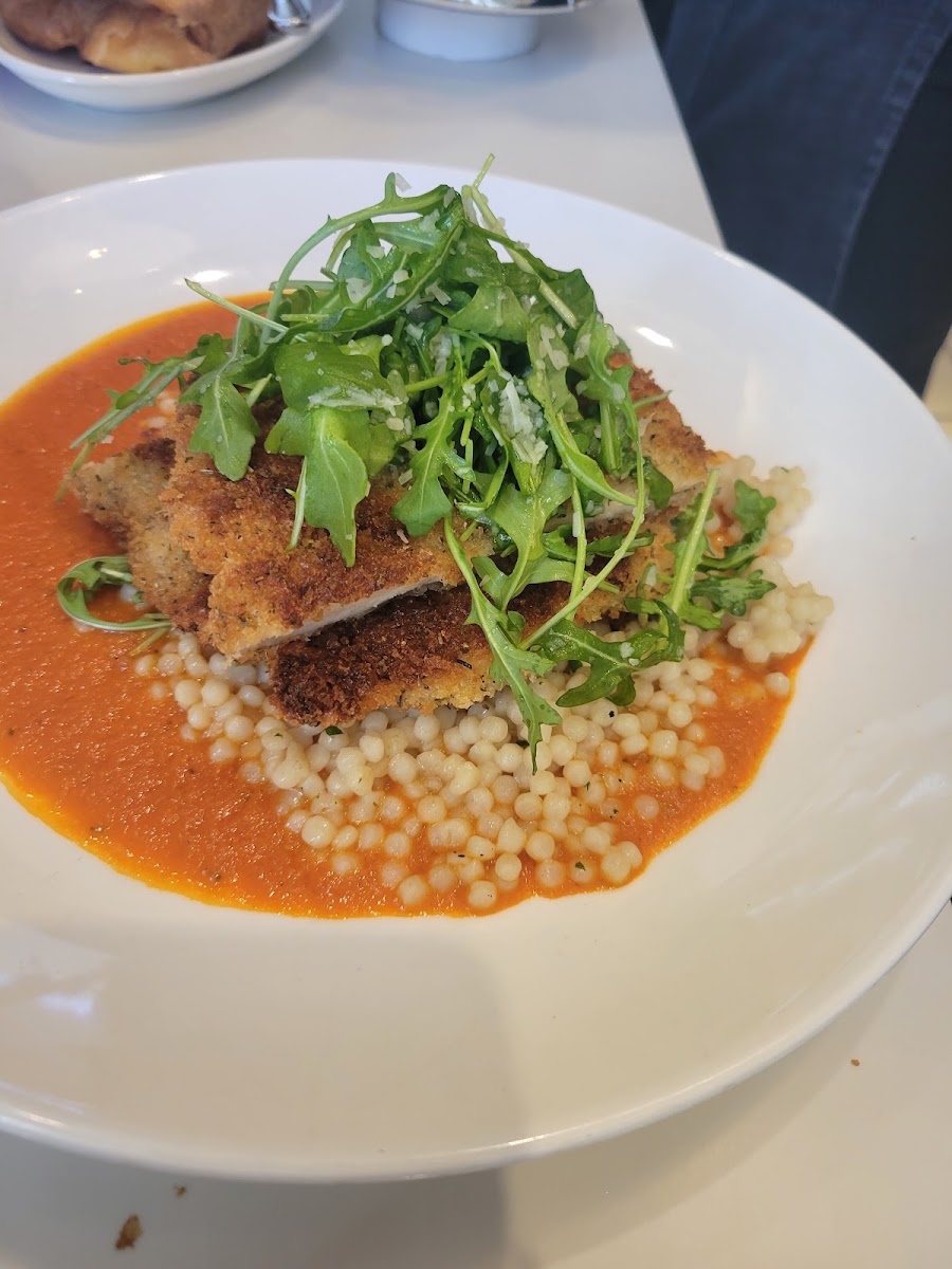 What a hidden gem. While shopping at Neimans hunger called and we decided to try the store's restaurant. I have eaten at neiman restaurants in Dallas and San Antonio, and I was not impressed by any stretch. So why try this one? Well, I was hungry, and it's hard to screw up a sandwich. I was completely blown away by the professionalism of the staff and the attention to detail. I ordered Aqua Panna and an ice tea, both presented in a pleasant fashion. They brought the first surprise, popovers. Yummy. The second surprise was a demitasse cup of chicken broth. Both elegant and tasty. Finally my main course was served. Chicken milanese. It was perfectly prepared.