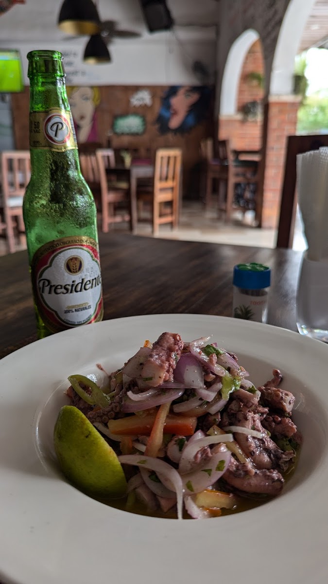 We stopby for lunch after grocery shopping.we only took 2 appetizers to share because we are not heavy lunch eaters. The fried calamares taste good but à bit chewy to my taste.The ceviche is perfect to me...taste like just how i make mine just add tabasco. I heard a lot of goos feedback thats why we tried it.The owner was friendly anf asked us to come-back and try their authentic dominican food which is apparently not on the menu and promise qe surely will. The 4 star on the food will be updated as soon as other food will be tested.