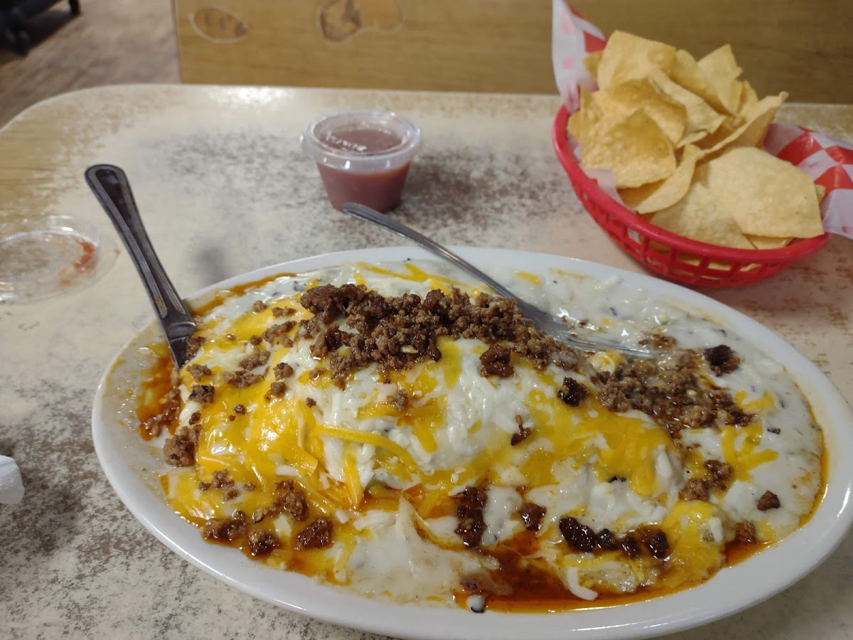 Chill, relax atmosphere it's a small family run place with the BEST Green Chile burrito with ground beef to die for and loaded with cheese what's not to love!!! Hats off to the chef's for sure!