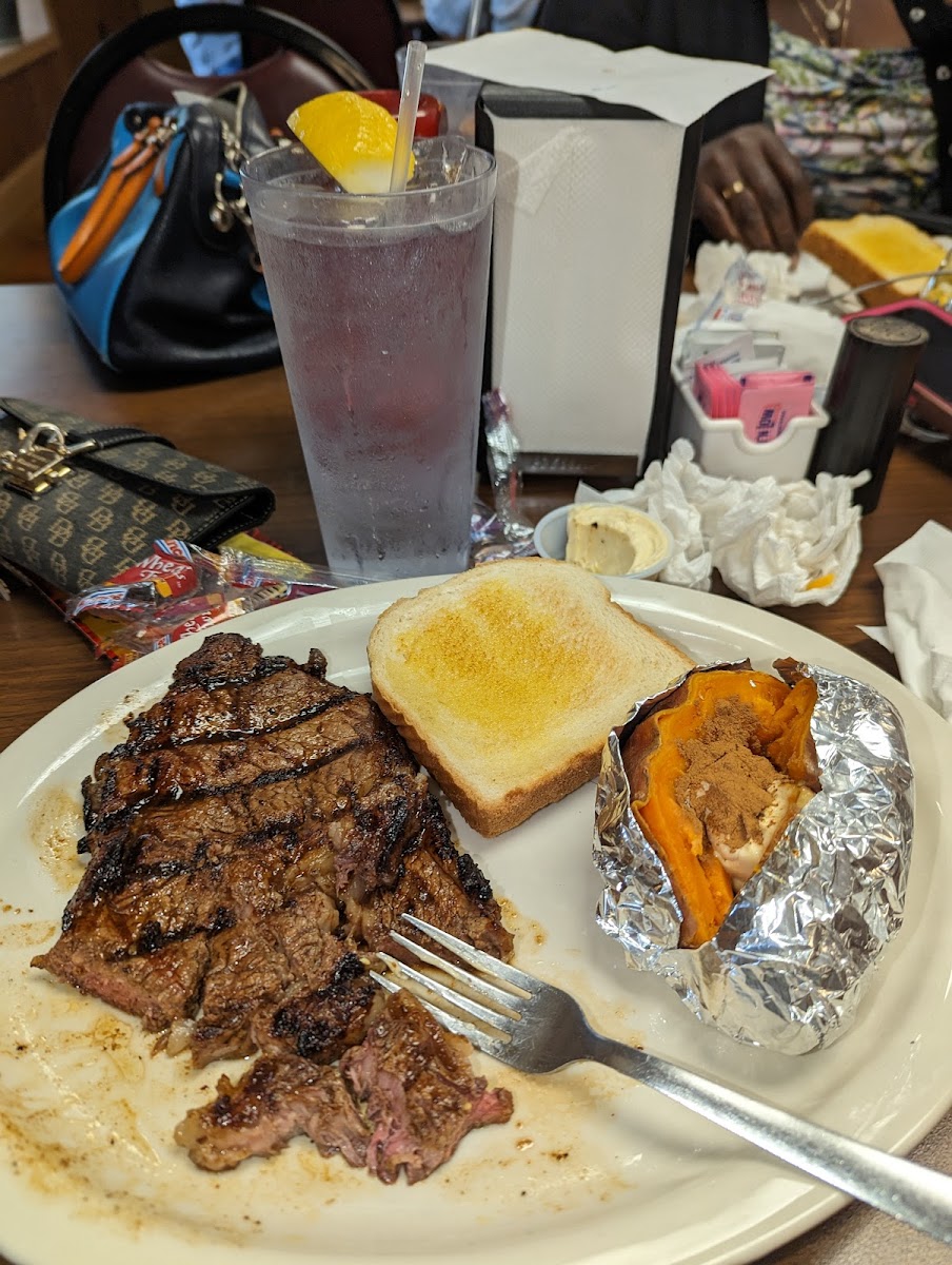 I had a salad and a ribeye sandwich. it was very good my mom and her cousin had cheese burgers and fries