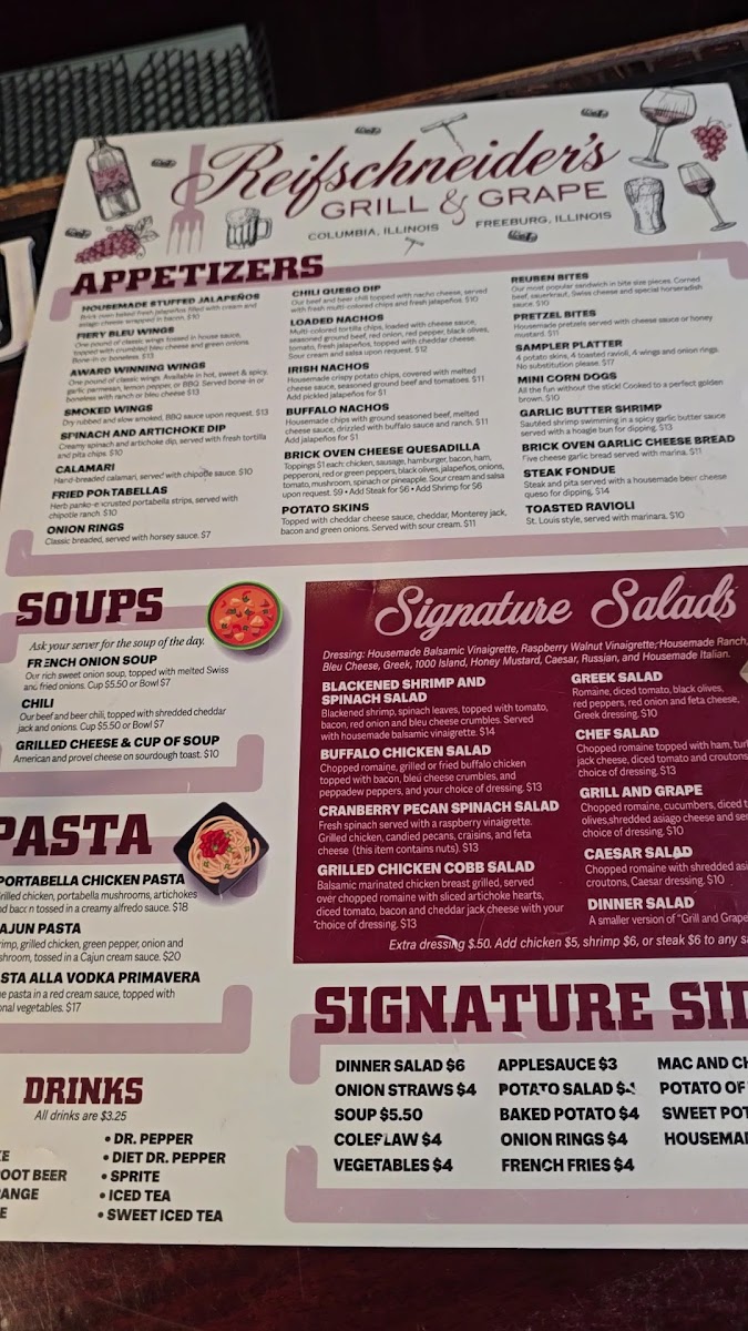 Fresh spinach served with a raspberry vinaigrette. Grilled chicken, candied walnuts, craisins, and feta cheese. (This item contains nuts)