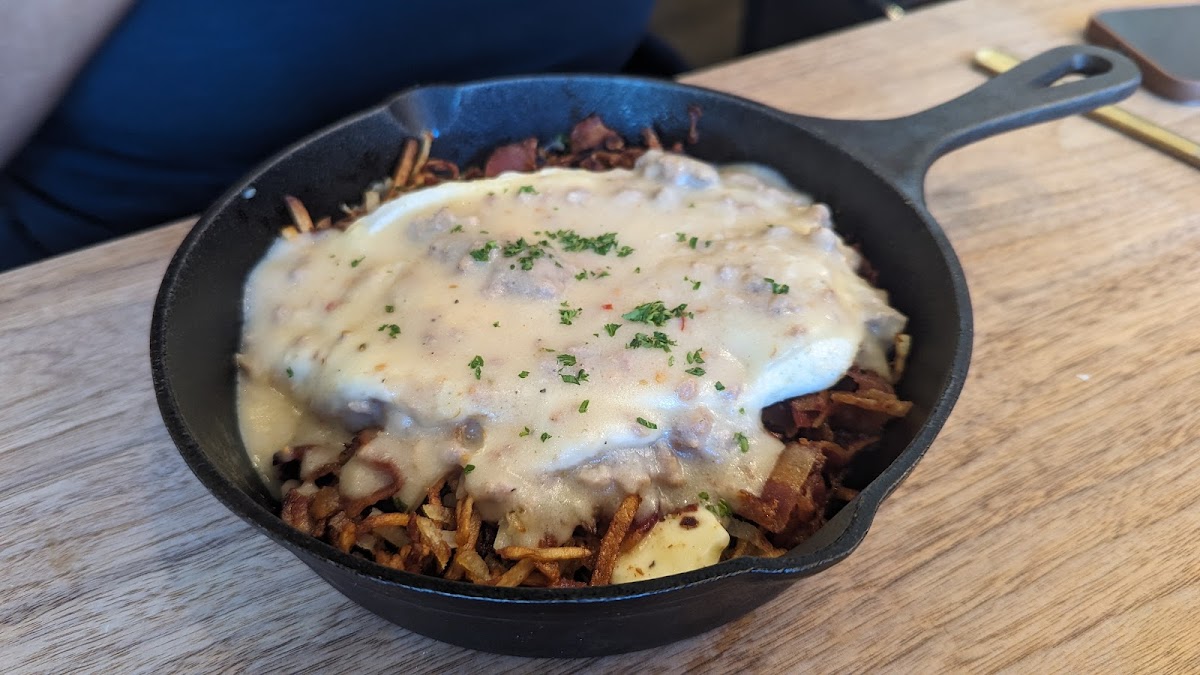 We had breakfast at Mineral 1886 this morning, and we had a pretty good experience. The updated interior of the restaurant and hotel surprised us as we walked in. We really like the way the interior is designed, modern but with that historic charm. We waited in the rather cozy hotel lobby for about 10 or 15 minutes before a table was ready for us. We ordered drinks (coffee + donut and a soda), and they came out fairly quickly. Our server took our food order shortly after. The food did take pretty long, however. We waited probably 30 or so minutes for our food to come out. Once it did arrive, we did enjoy our meal. Even though the green chili was very watery (smothering one of the two), the "Leadville 100" skillets were tasty. We overall had a good experience, and most of the staff we interacted with was friendly and welcoming. We will consider Mineral 1886 on our next visit again.