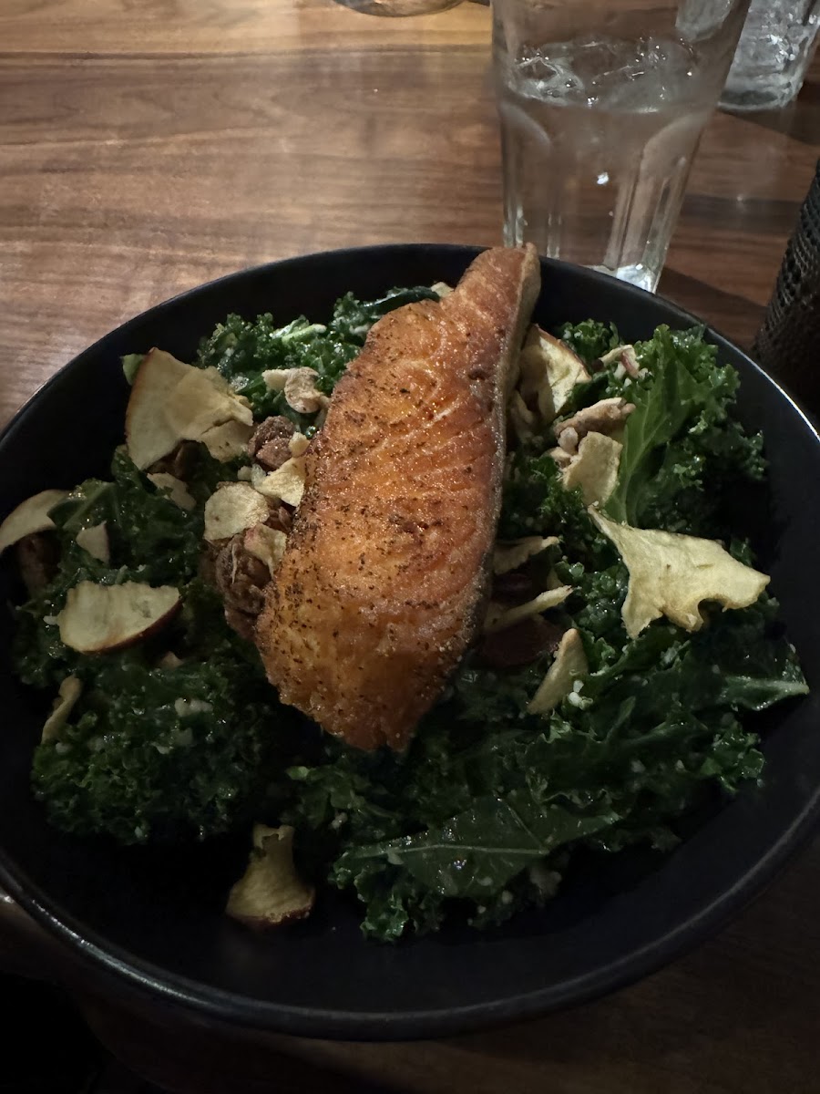 Everything about coming here is so incredibly amazing! I love the staff and I don’t even know if I could pick the favorite thing that I’ve eaten here. Steak and ravioli is an amazing yummy combo, The kale salad with salmon on top is incredible, The crispy Chicken sandwich is so good! Last night I had to have chicken with the brussels sprouts. The chicken is so big that it will feed you for days! And you must try the brussels sprouts!