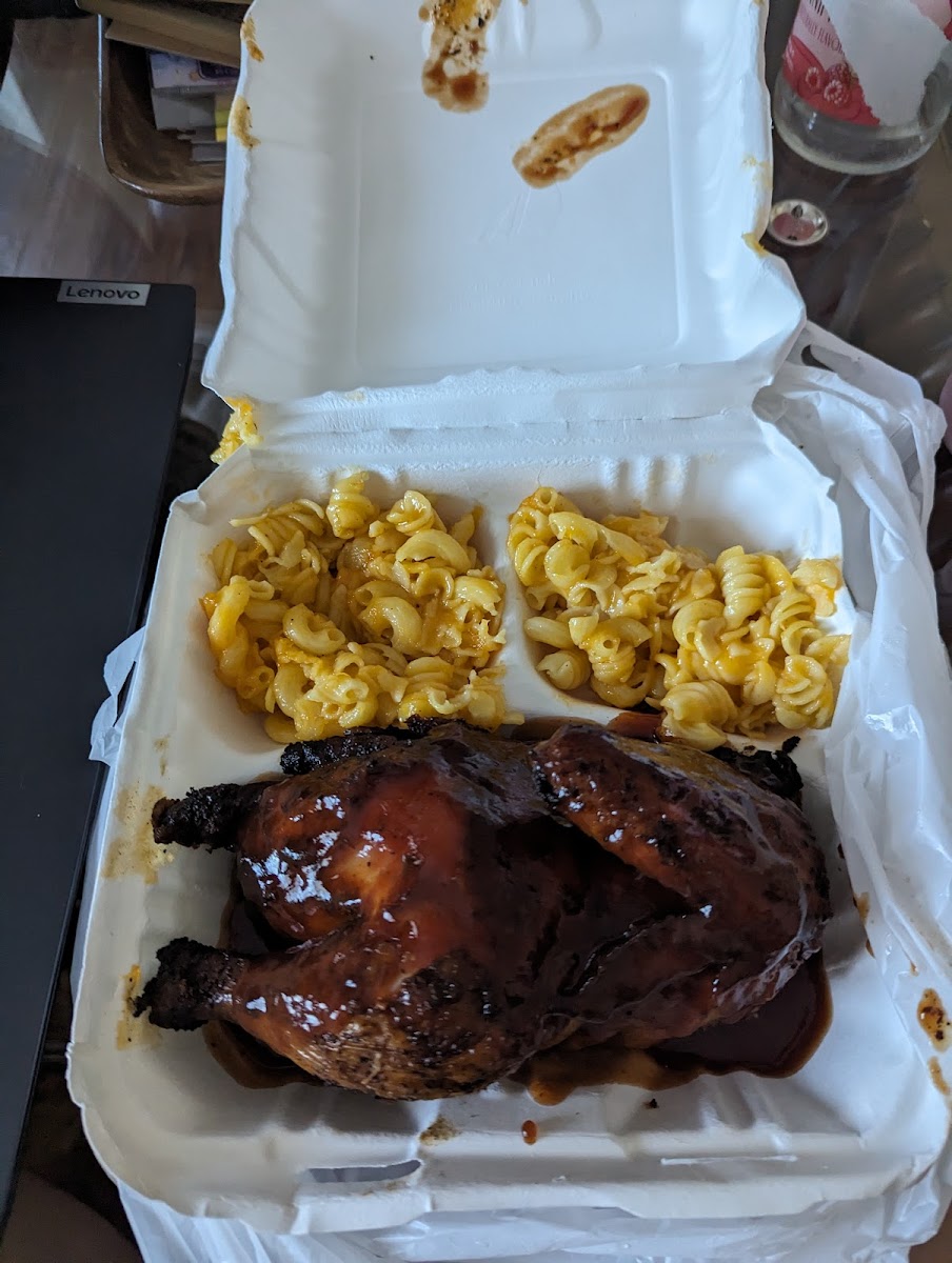 I got a half a chicken with the sweet barbecue sauce and I could tell you one thing my guy Ace knows what he’s doing definitely 10 out of 10 recommended!! I would’ve taken the photo of the food, but it was so good and I forgot lol