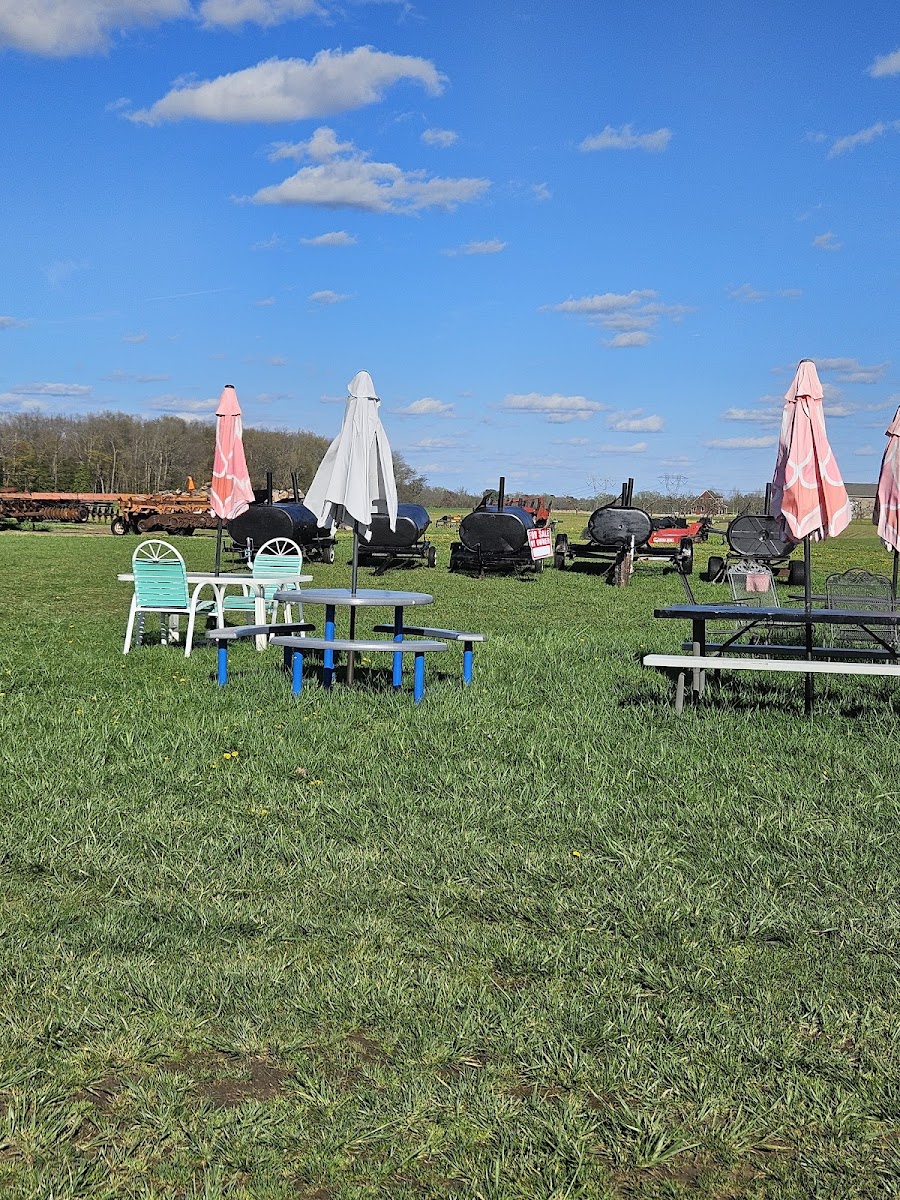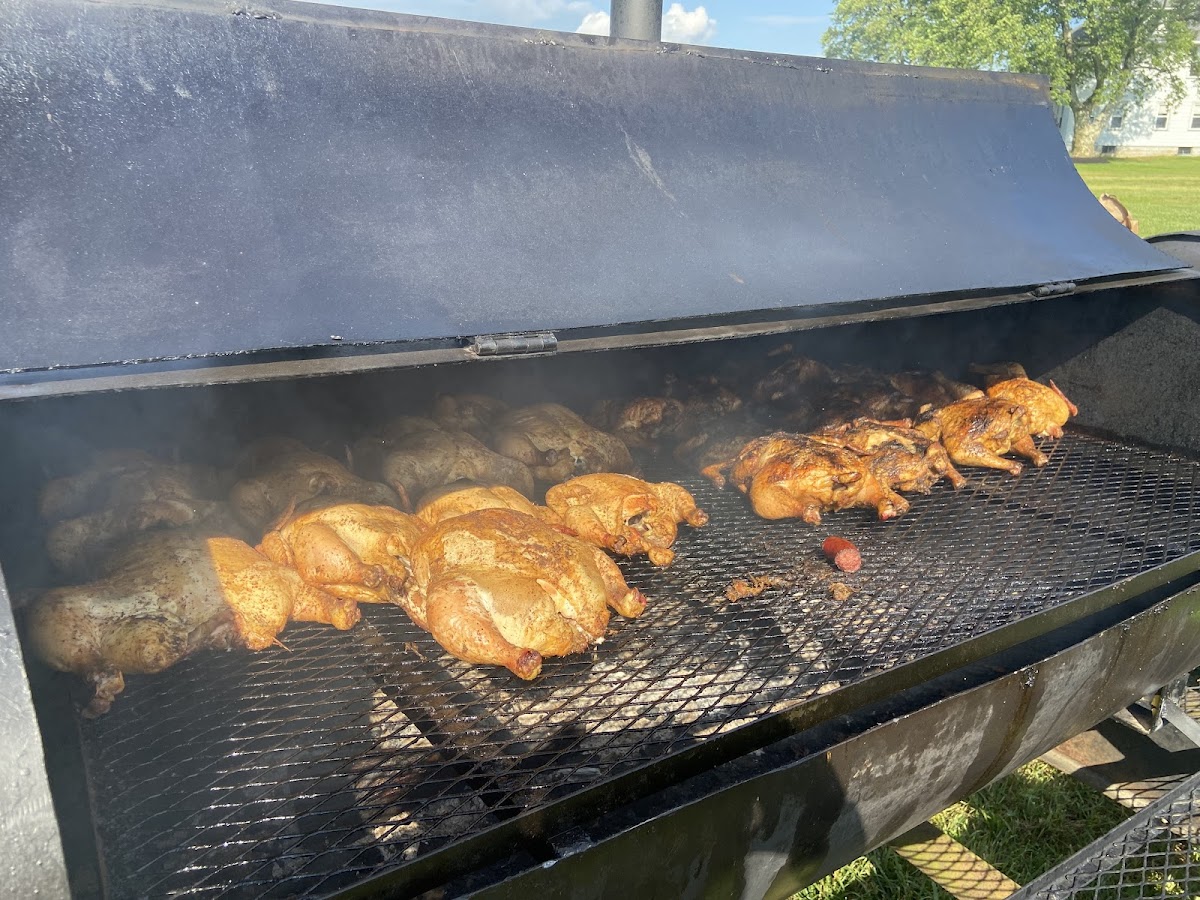 I was driving past heading for the Xmas tree farms and the smell was so enticing. I was on a mission for a tree so while driving back I just had to stop and try this place out. The owner was very friendly and a pleasure to talk to. We took the food home to eat since we had already eaten. I warmed it in the oven at a low 250 degrees. We had ordered Chicken, Ribs, sausages and collards... My mouth was in heaven! Thank you for the amazing food and service and thank you for your service to our country. I will definitely stop by again when I am in the area. As a side note a little girl and her parents stopped as we were waiting for our food and he was so kind that when the parents went to pay he said "little girls don't have to pay for a hot dog" and it made her day. You are an amazing person!