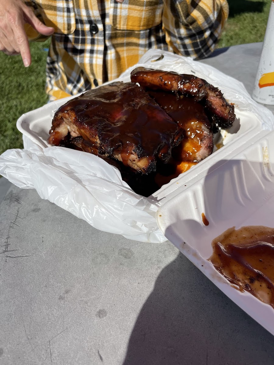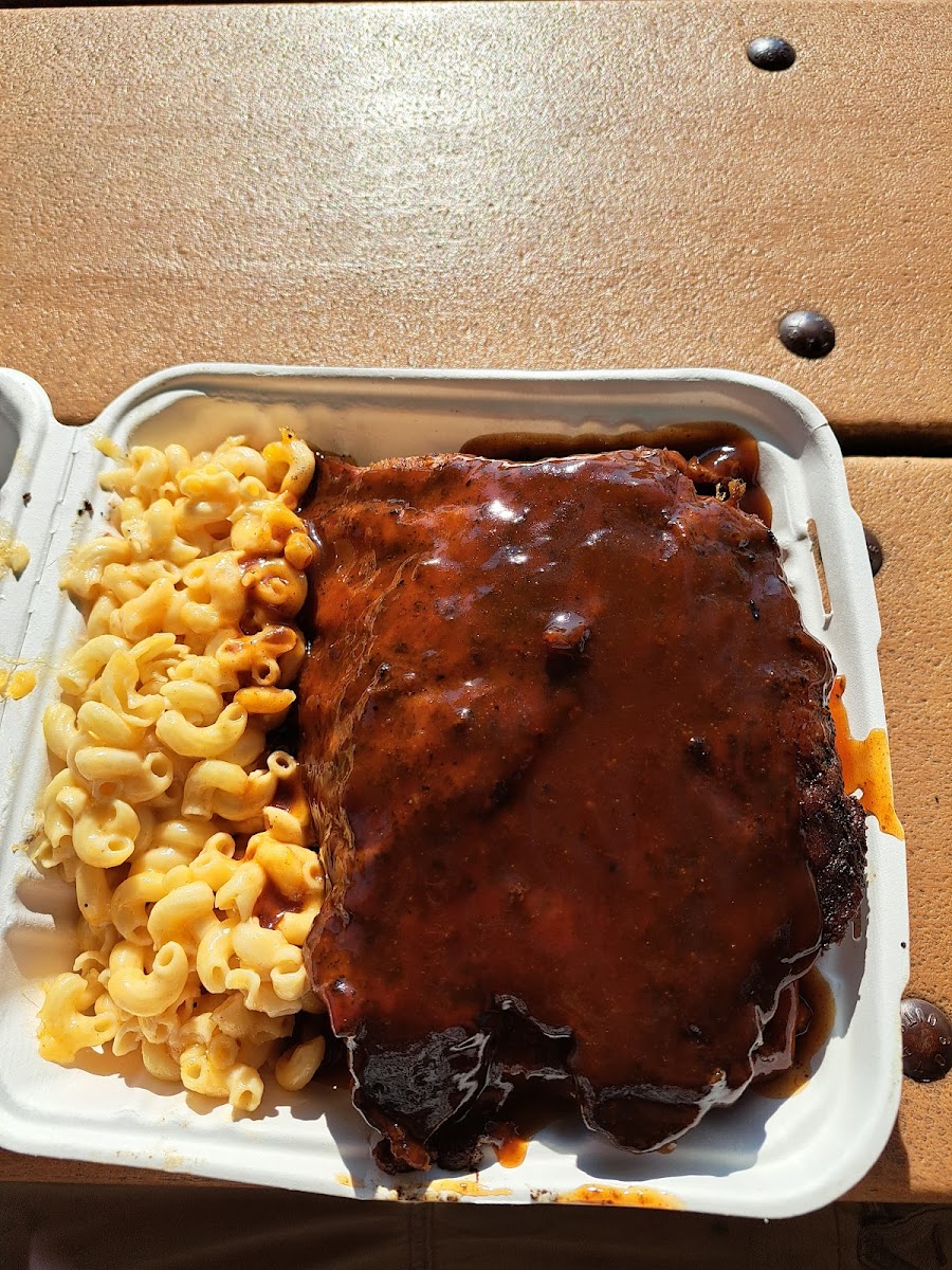 First, you can go ahead and disregard the couple negative reviews. The Owner/Chef of this roadside barbecue pit, knows exactly what they're doing. They kept the fat cap on the ribs which allowed it to render and keep the meat tender and juicy. Deep Smoke ring, rich of hickory flavor. I opted for no sauce this time cause I wanted to taste the cooking and not so much of the sauce and let me tell you, these ribs were on point! Mac and cheese and collard greens were absolutely delicious side choices. Would and will recommend this spot to coworkers, friends, and family. Thankyou for a wonderful meal!