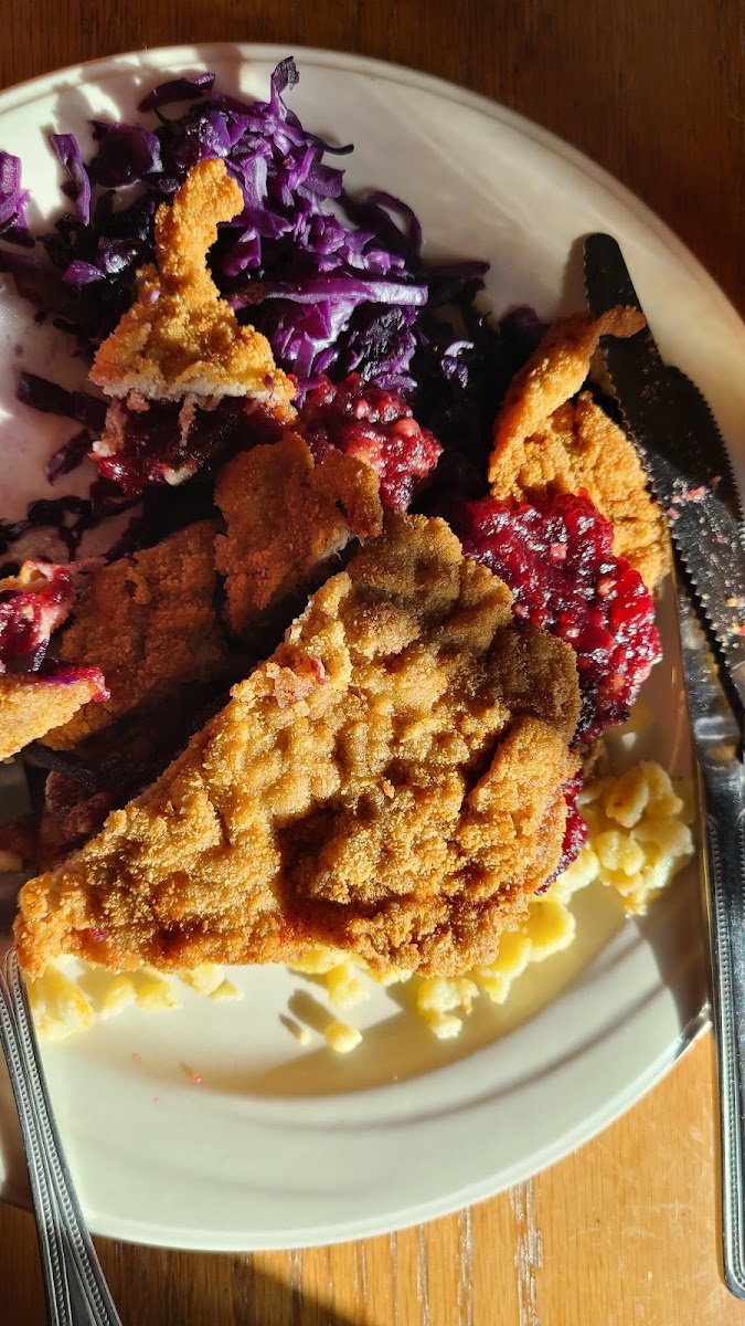 It was the most delicious wienerschnitzel and spaetzle I've had I actually ventured to Vienna Austria and it was comparable to the meals that we had their this was one of the best meals I've had in a long time extremely authentic beautiful atmosphere wonderful server name Samantha. It's one of those places that you must stop at if you are in New Carlisle.