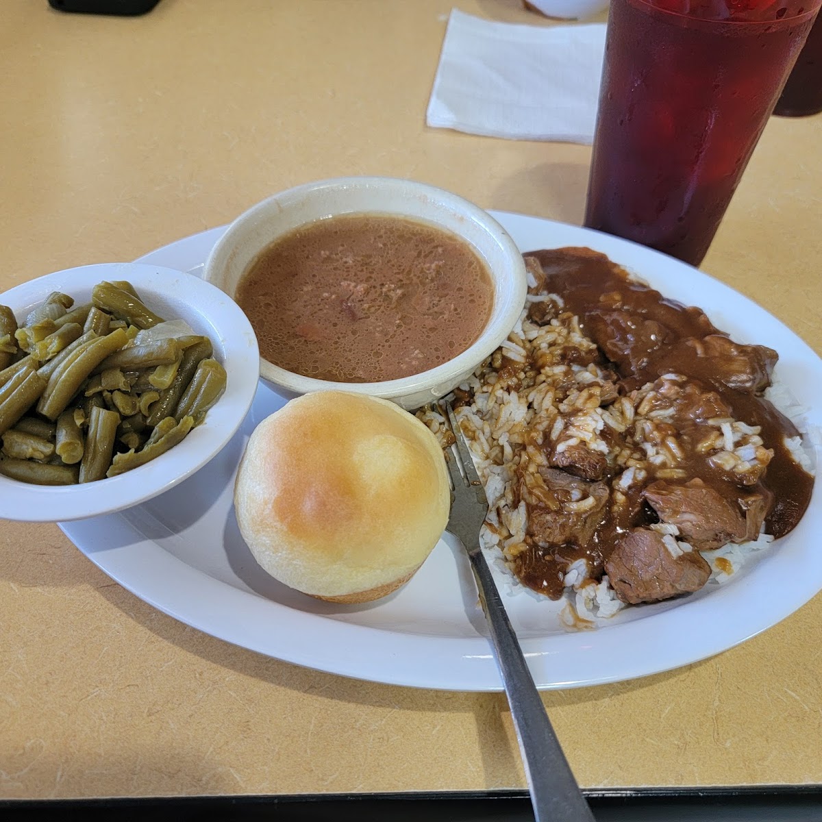 Passing through from Dallas back to Houston. If you want true & delicious soul food? This is the place!! Tastes like true home cooking. I will definitely be stopping by again. The service: you can’t get anywhere. So kind. Wasn’t rude or giving attitude. If you are traveling, you should try it. I got the chicken fried steak. & Hamburger steak. Greens, corn bread, mashed potato, mac and cheese