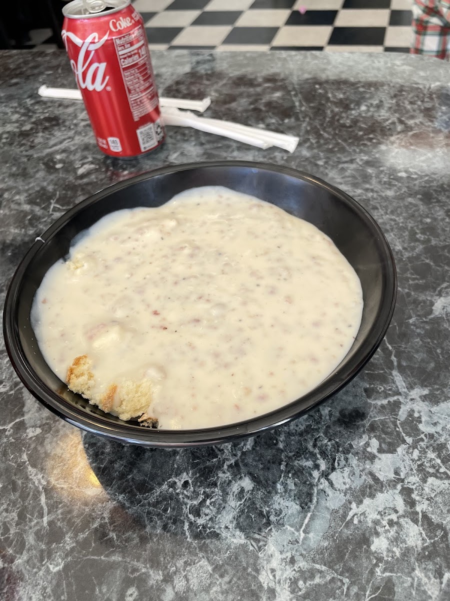 Well... I've read all the reviews... and I'm not going to decide not to go in there again because of the reviews... because my experience was pretty good... I ask the young lady at the bar if the cook could mix in some cottage cheese with my scrambled eggs instead of milk and she did and the scrambled eggs came out perfectly there in the picture ...I would've preferred white gravy on top of the breaded beef fritter... instead of all that sausage gravy... but other than that the breakfast and everything else was great the service was great... after I left I told the owner who I think was cooking that it was great and then I left... all that in the pictures cost me $25 including the tip