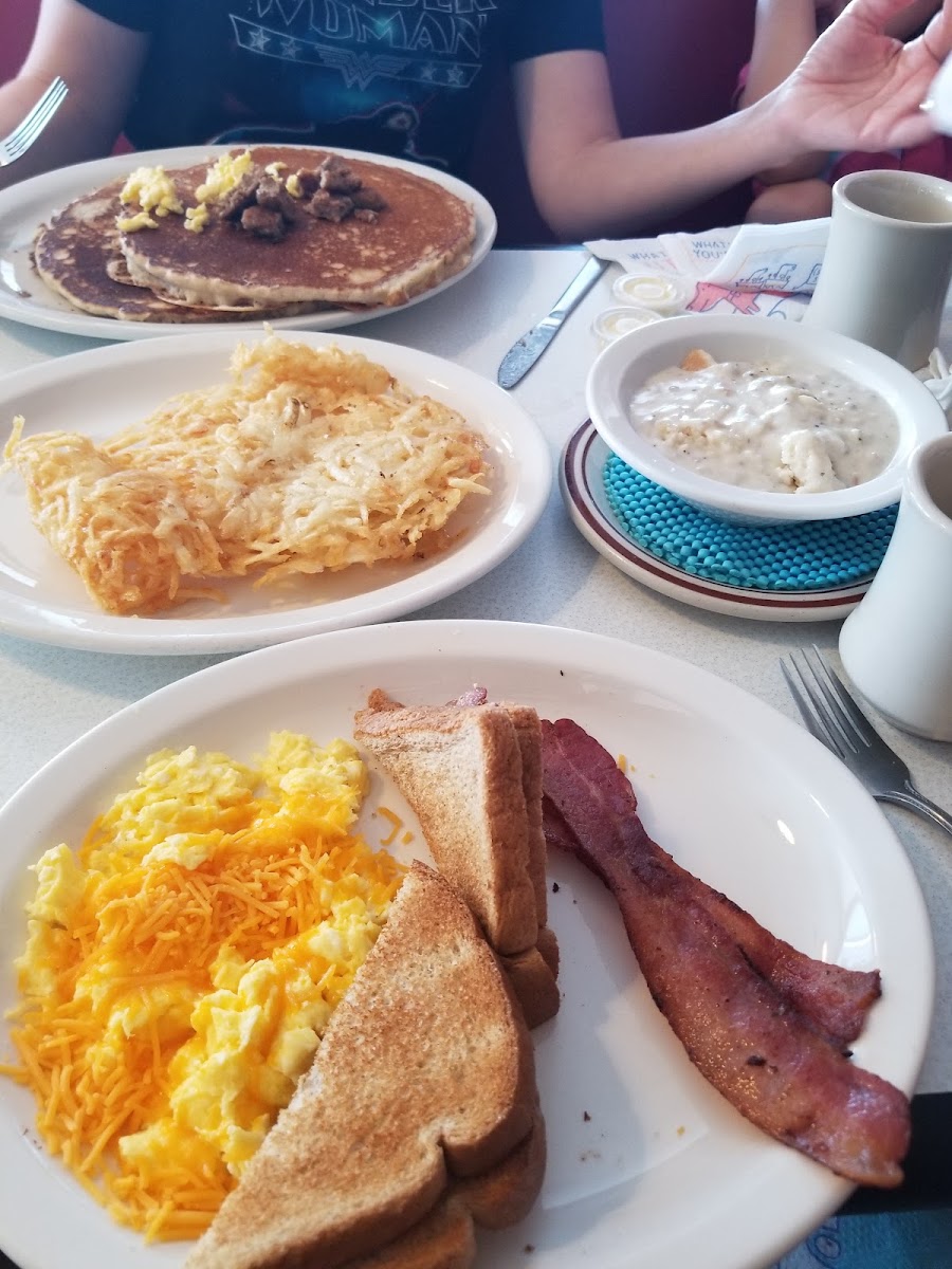 Loved this little place. Food, service, and setting was great! Will be back. My boyfriend got a cheese omelet. They even made him a second one without us asking. They said the first one was made with only 2 eggs. Can't beat that! I had the Fritz slammer. Delicious! Perfect bacon, crispy potatoes, over medium egg, just like I order. Sausage gravy and biscuits were good. Looking forward to returning next time we are in the area.