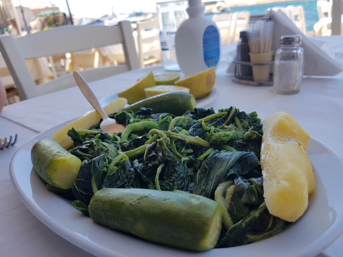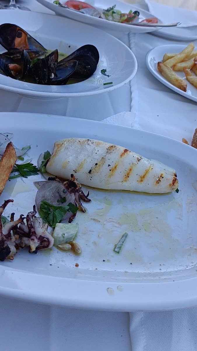 Just walk round the harbour away from the touristy area and you will find this superb restaurant! The menu is clear if anything is frozen with fresh options too. Calamari was excellent, tender and tasty and the stuffed courgette flowers were perfect! Excellent value and great service. Well worth taking time to walk a little further. Surprised with a gorgeous chocolate cake and raki to finish which was on the house! What's not to like!!